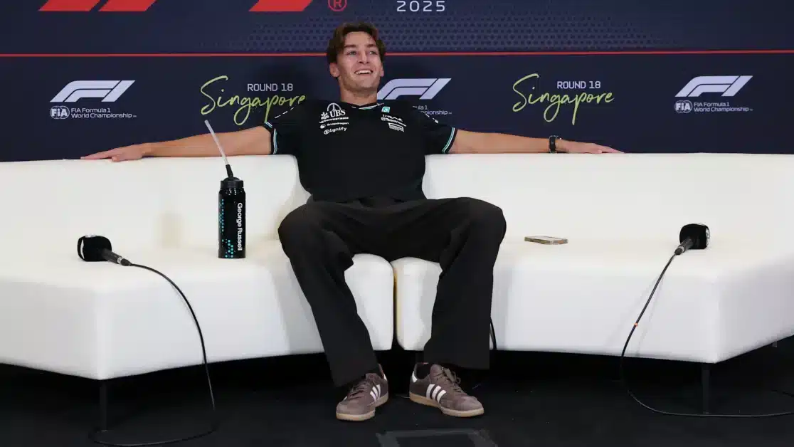 Gallery5SINGAPORE, SINGAPORE – OCTOBER 05: Race winner George Russell of Great Britain and Mercedes AMG Petronas F1 Team celebrates in parc ferme during the F1 Grand Prix of Singapore at Marina Bay Street Circuit on October 05, 2025 in Singapore, Singapore. (Photo by Mark Sutton – Formula 1/Formula 1 via Getty Images)Close image gallery