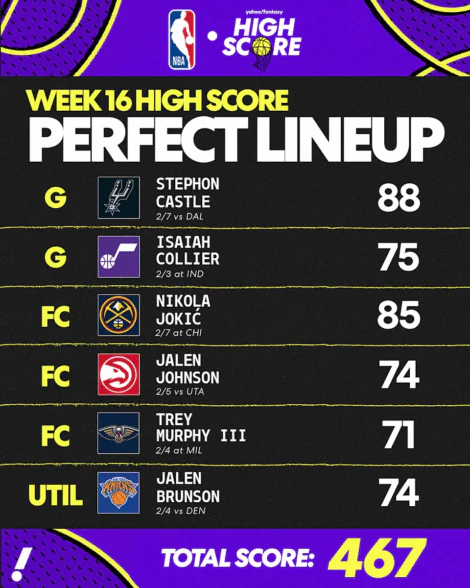 ¡Parece que las puntuaciones altas han vuelto al menú! Se calcula que el minuto Nikola Jokić regresa a la alineación de los Nuggets, vemos un alejamiento de Luka Doncic dominando la alineación perfecta semana tras semana. Pero no fue Joker quien encabezó el marcador en la Semana 16 en el baloncesto de fantasía: fue el Novato del Año reinante.