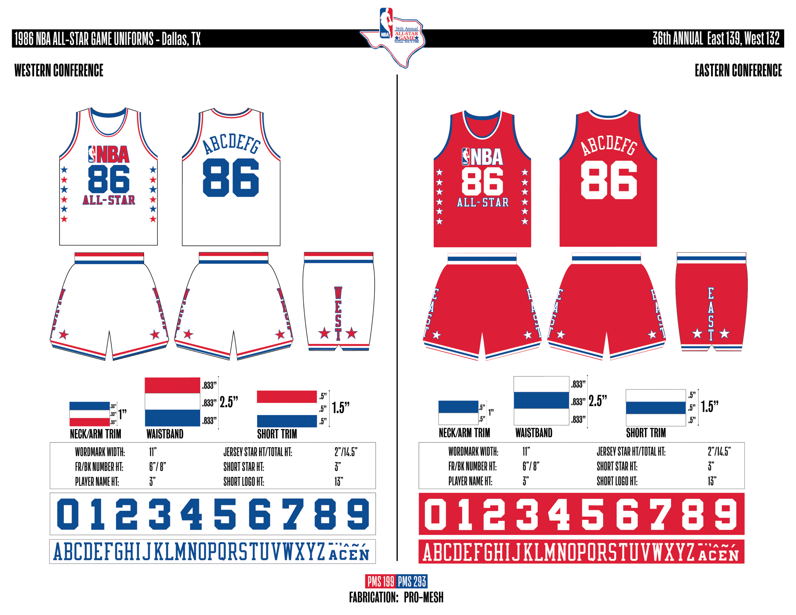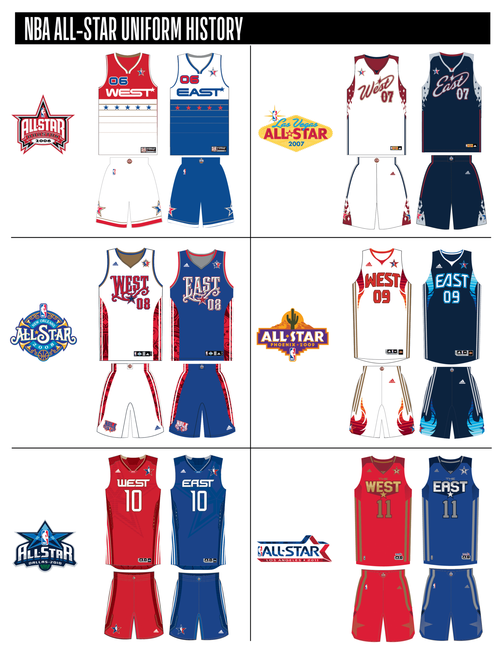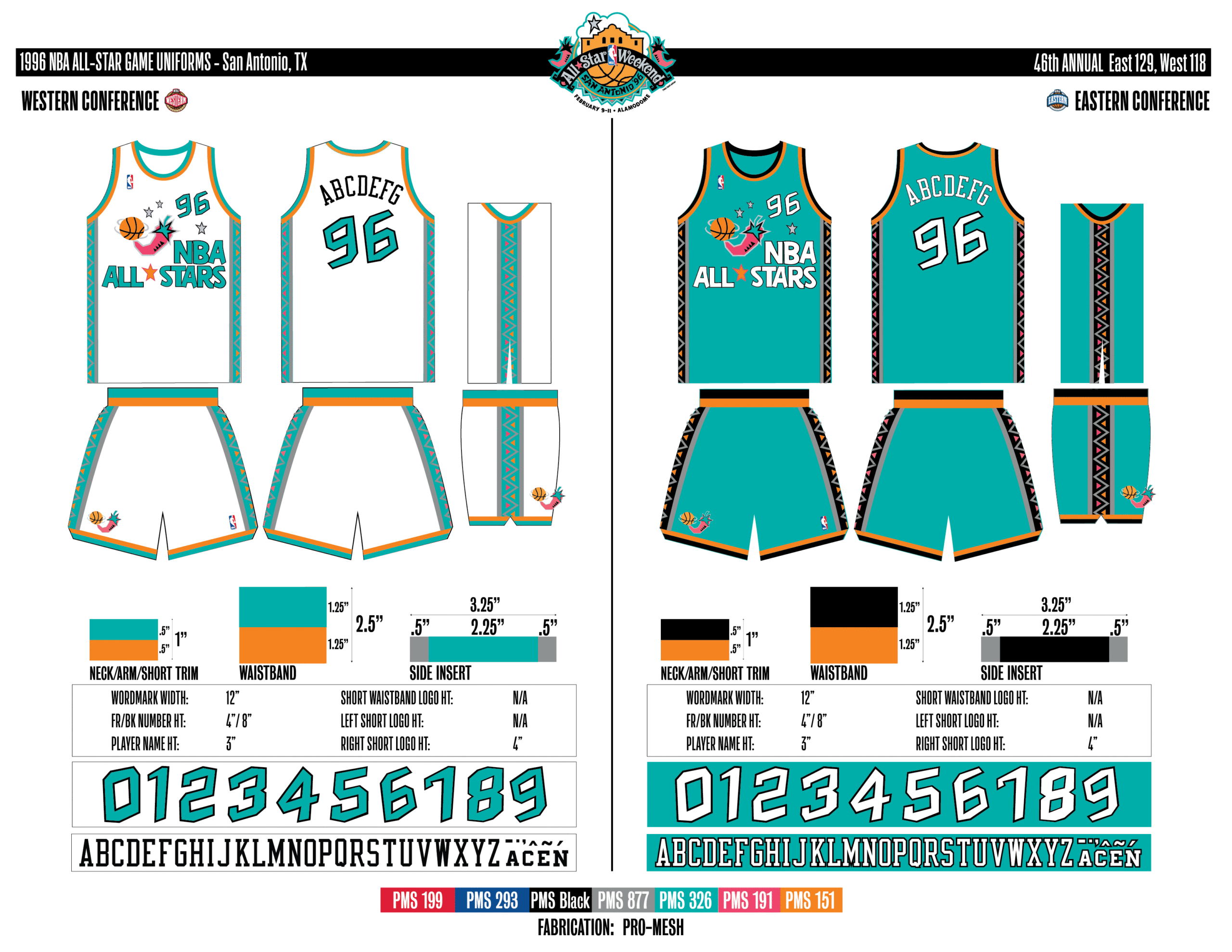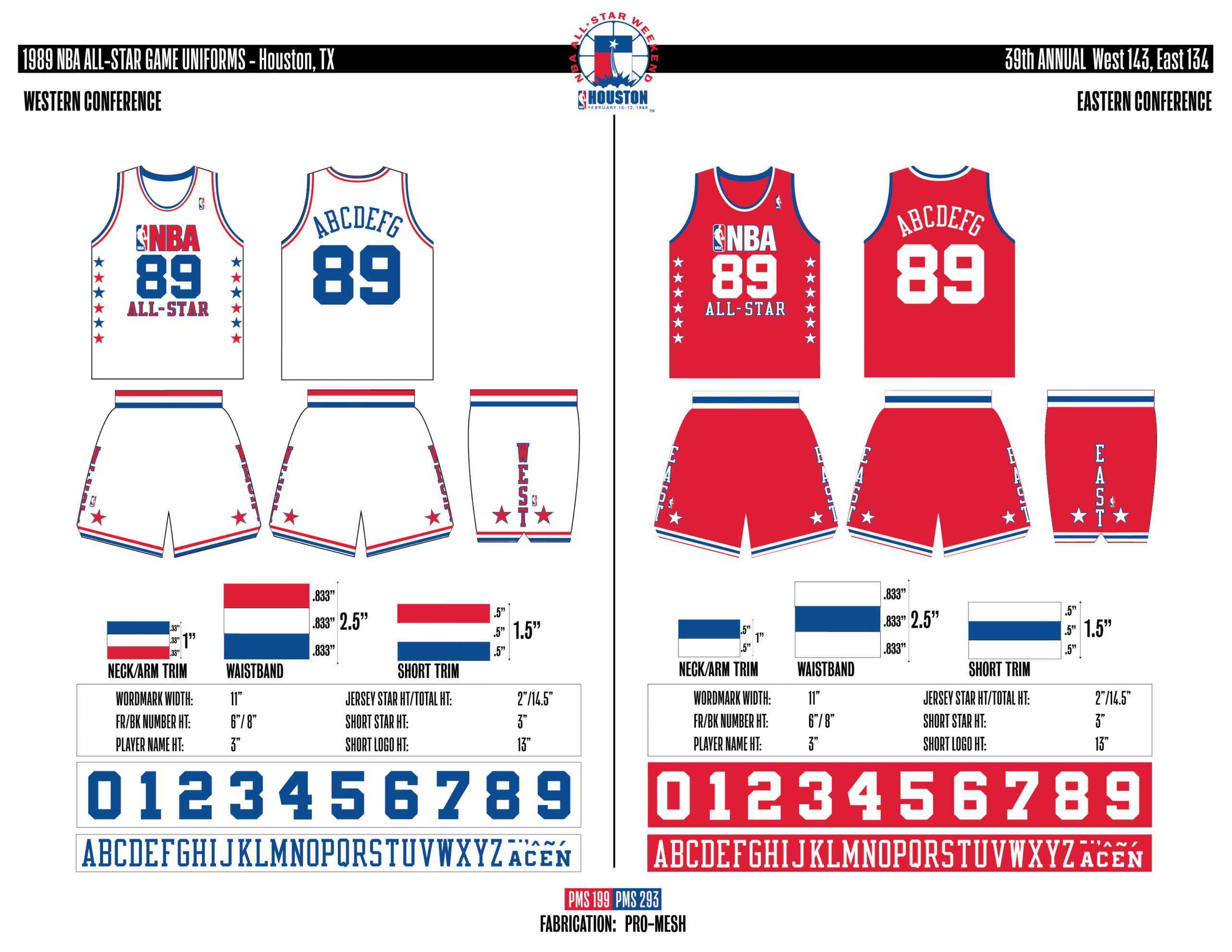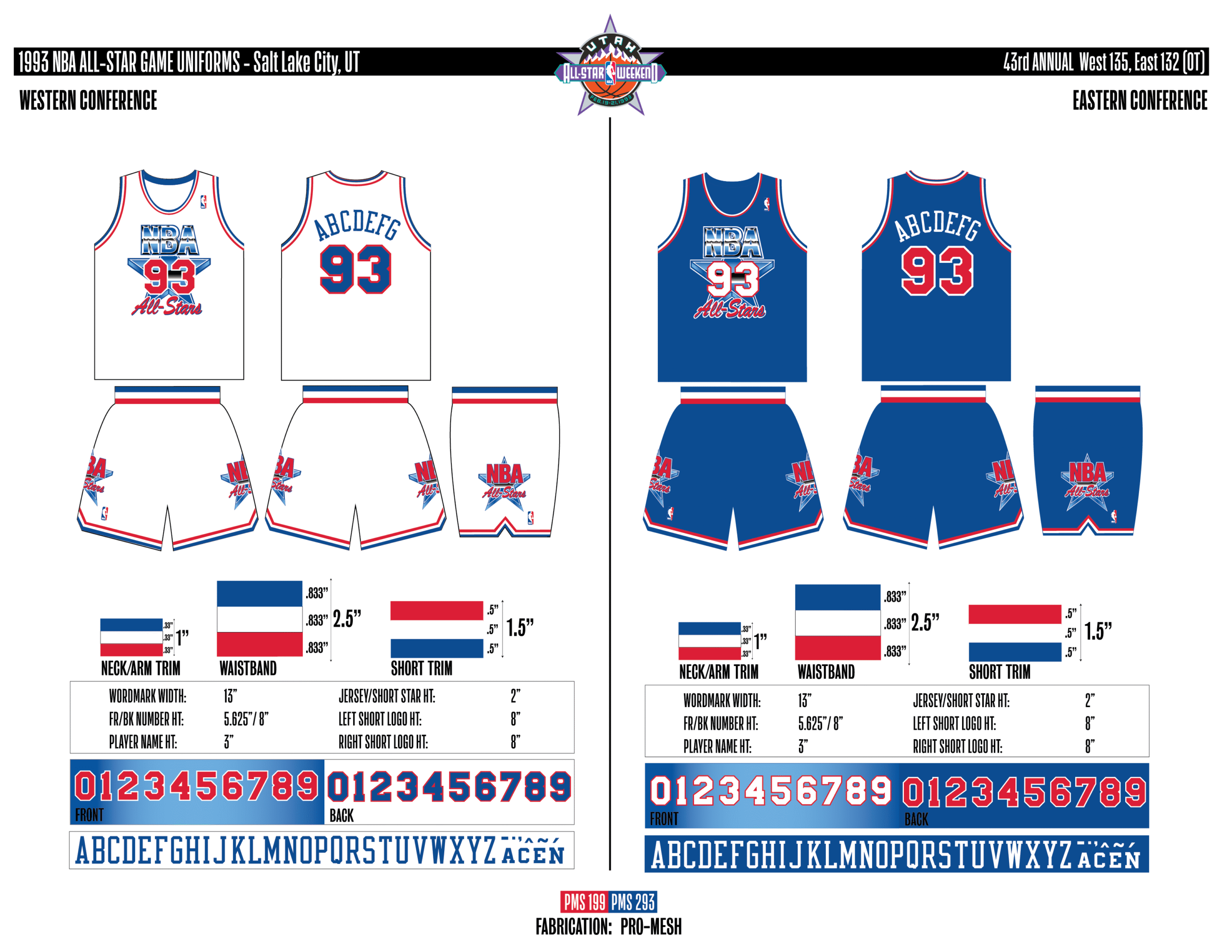 En esta era, los All-Stars de las Conferencias Este y Oeste vestían los uniformes de sus equipos (Este con blanco local, Oeste con uniforme oscuro). Se colocó un parche conmemorativo frente al logo de la NBA. En 2000, se añadió un jocktag conmemorativo.