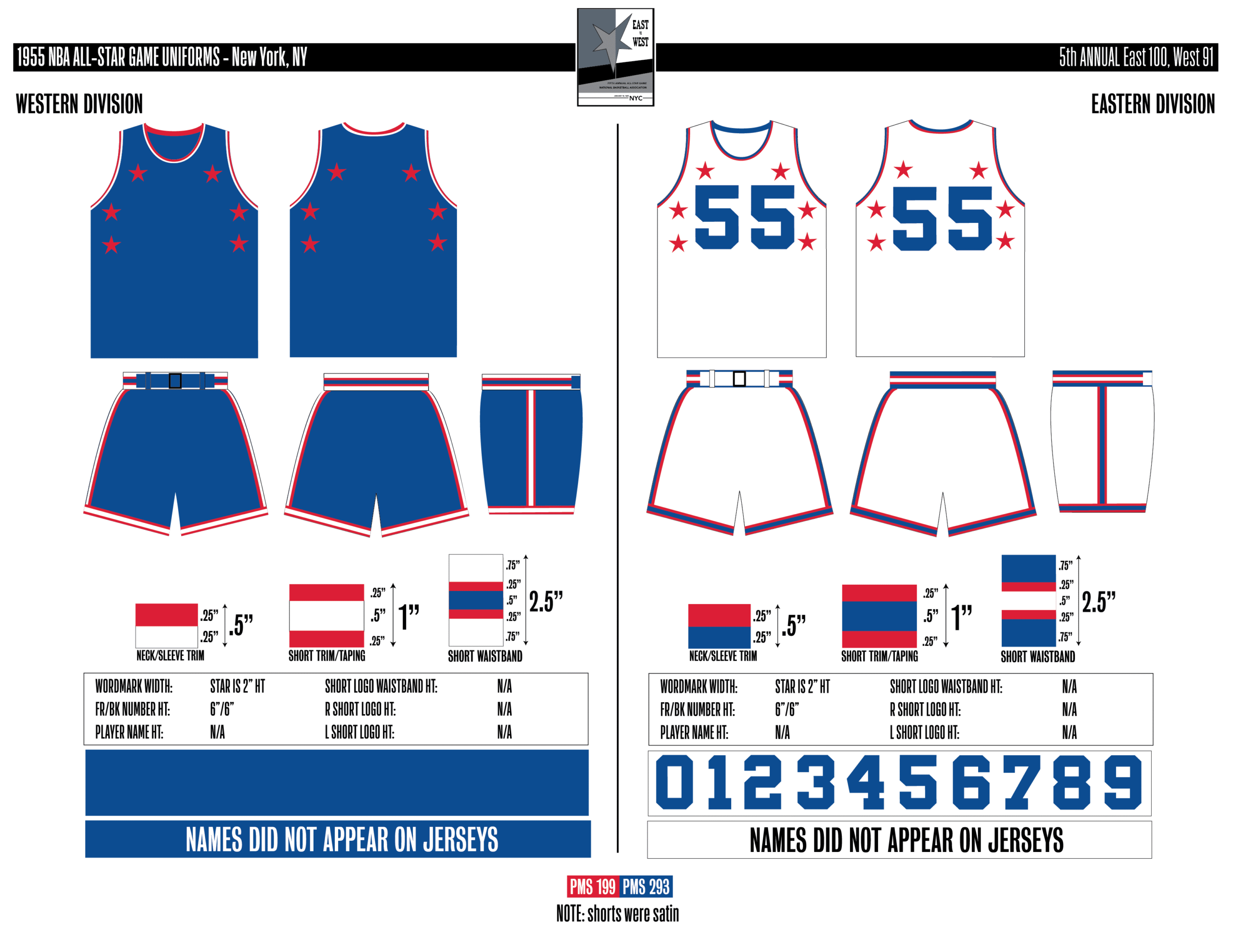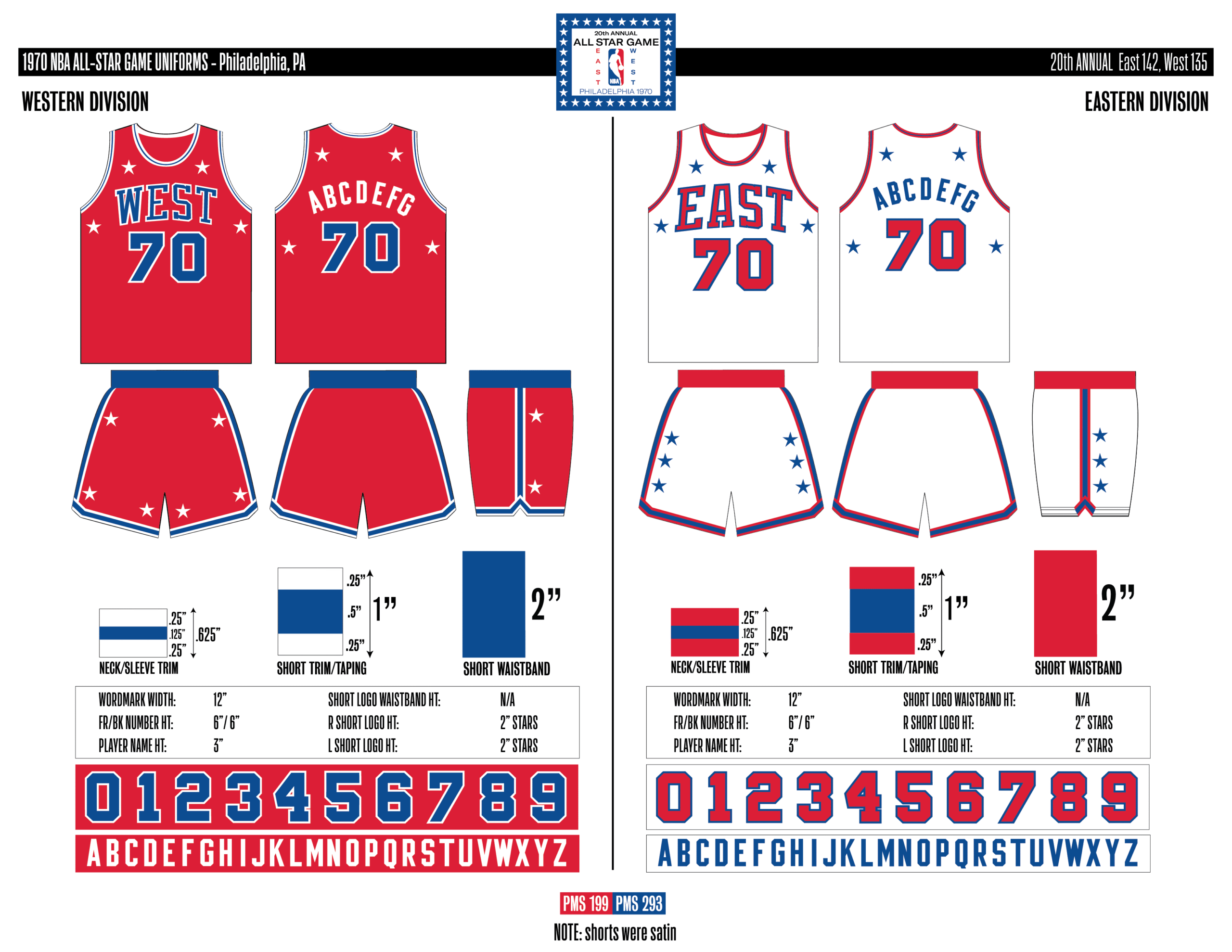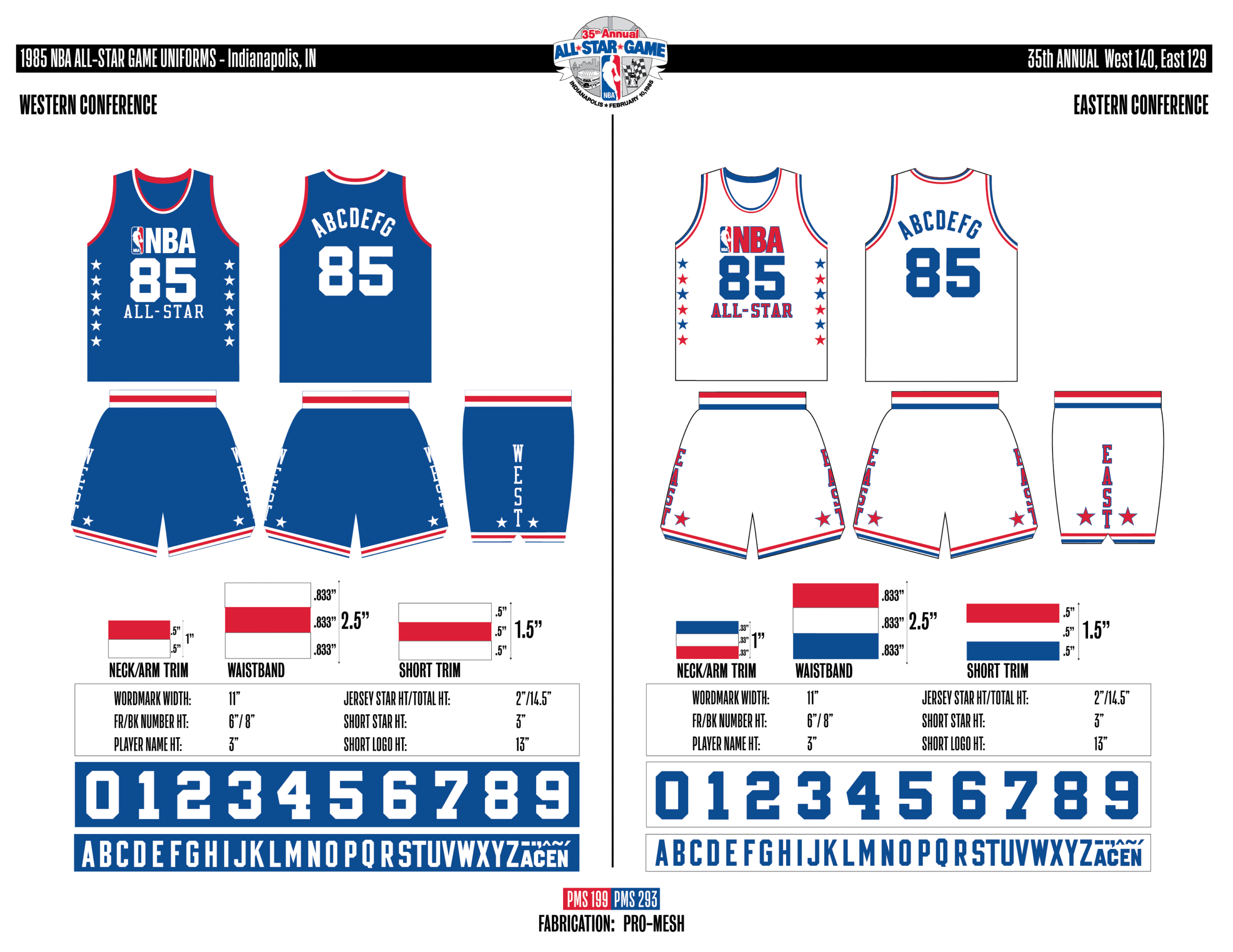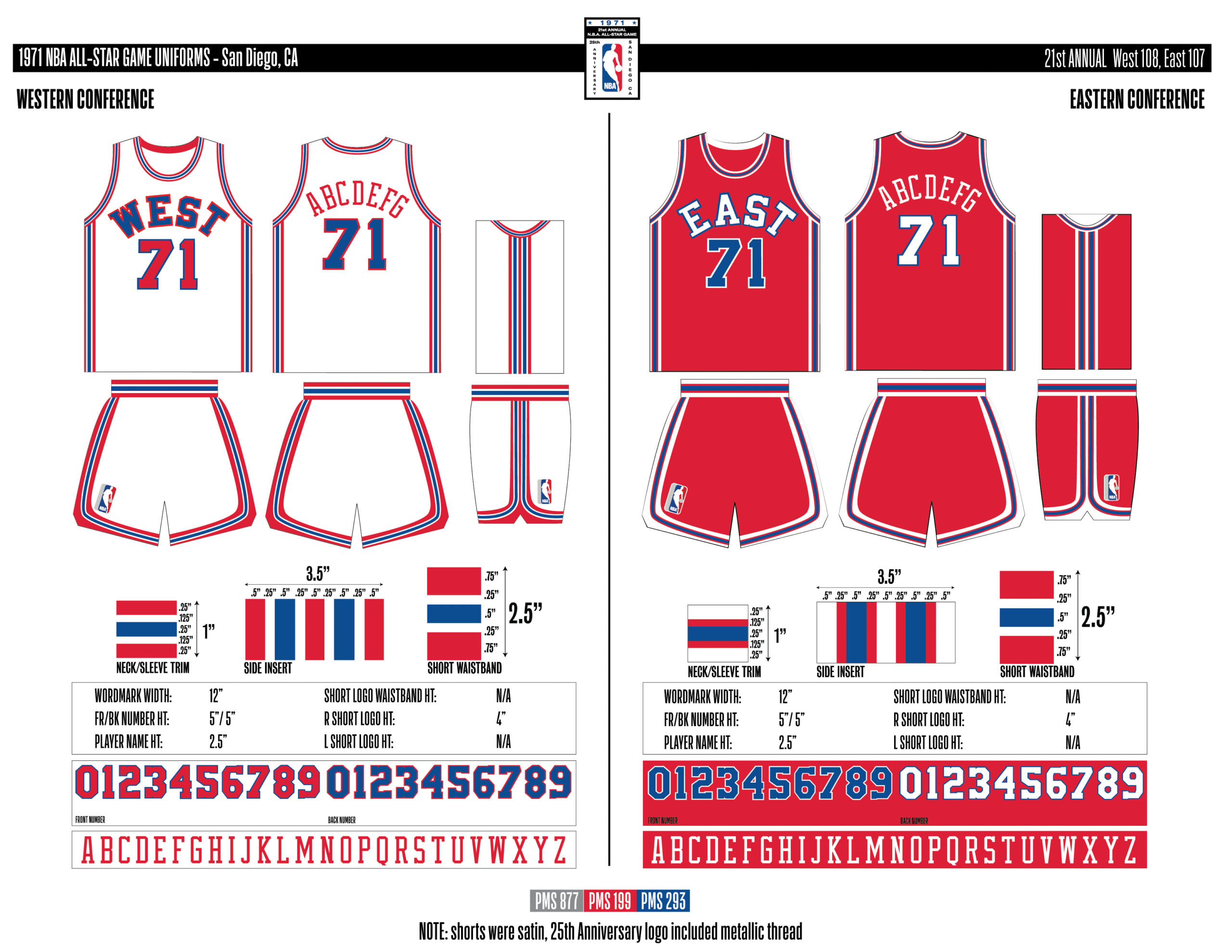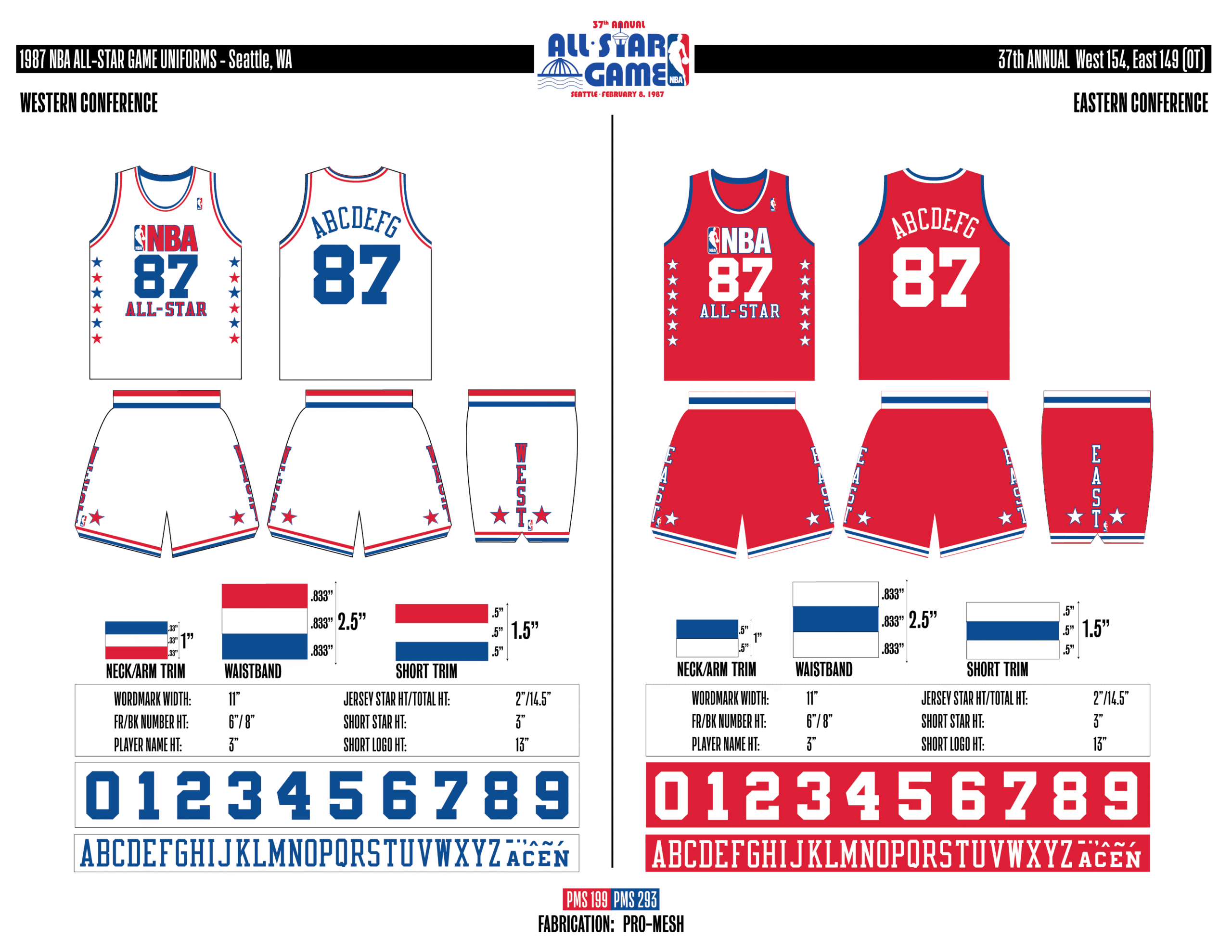 En esta era, los All-Stars de las Conferencias Este y Oeste vestían los uniformes de sus equipos (Este con blanco local, Oeste con uniforme oscuro). Se colocó un parche conmemorativo frente al logo de la NBA. En 2000, se añadió un jocktag conmemorativo.