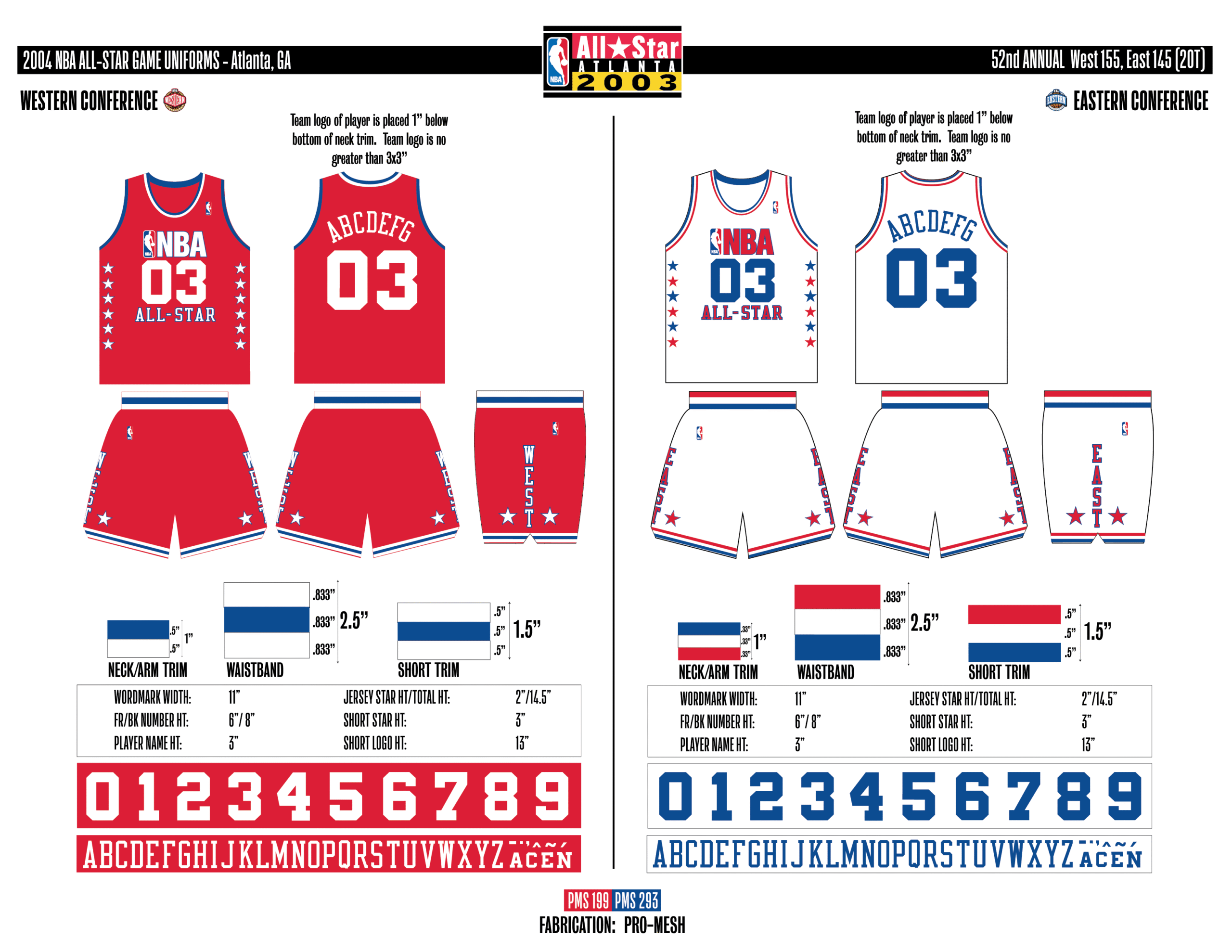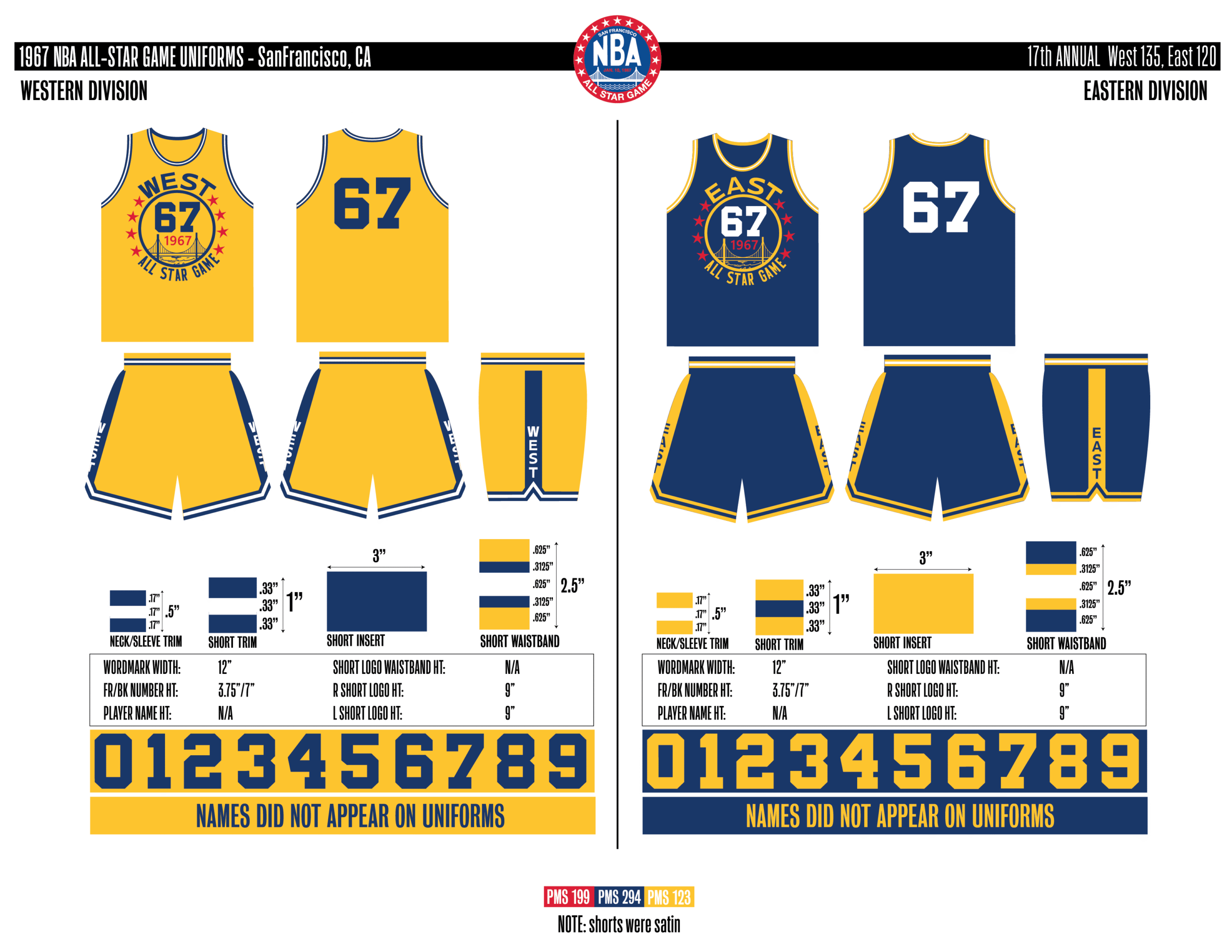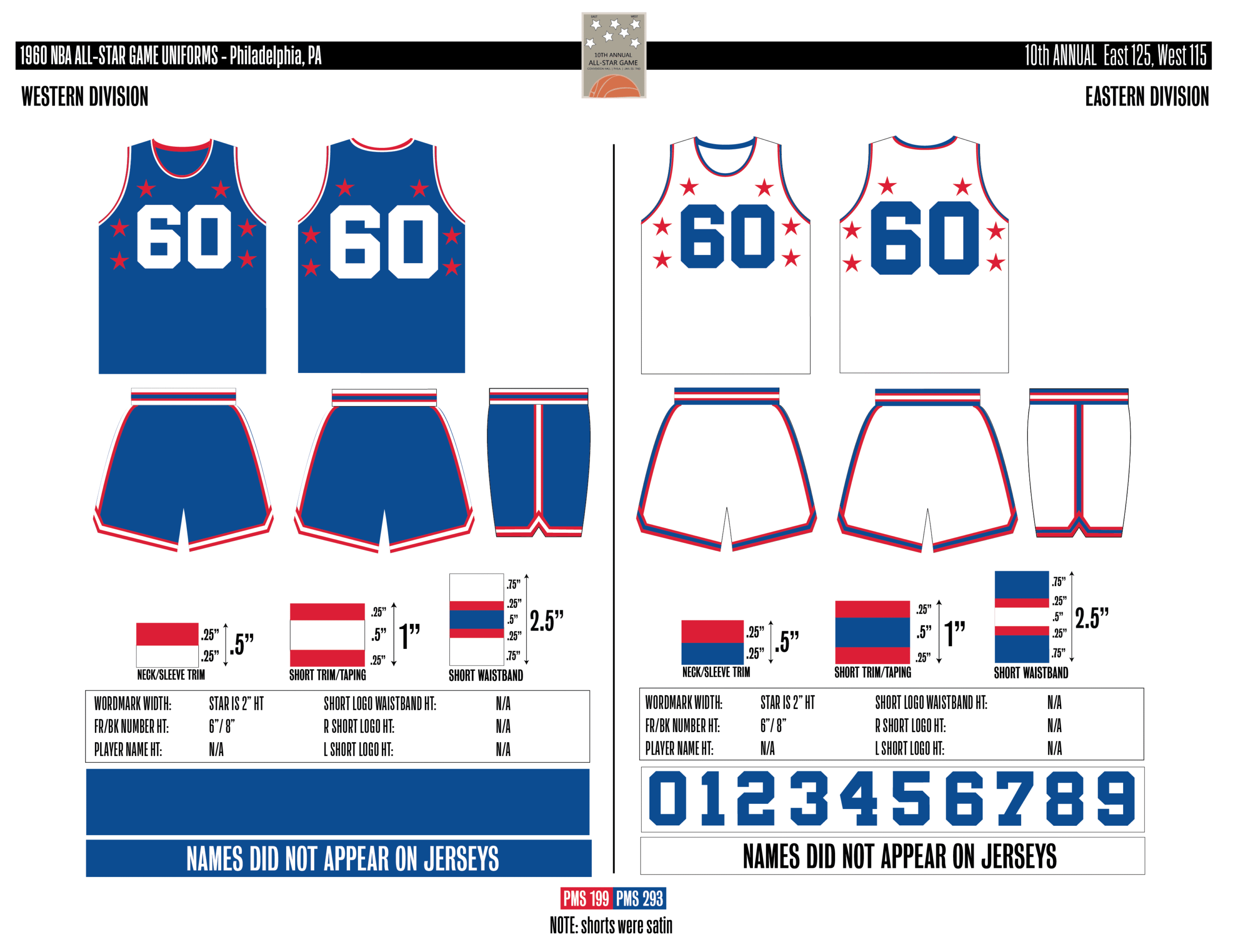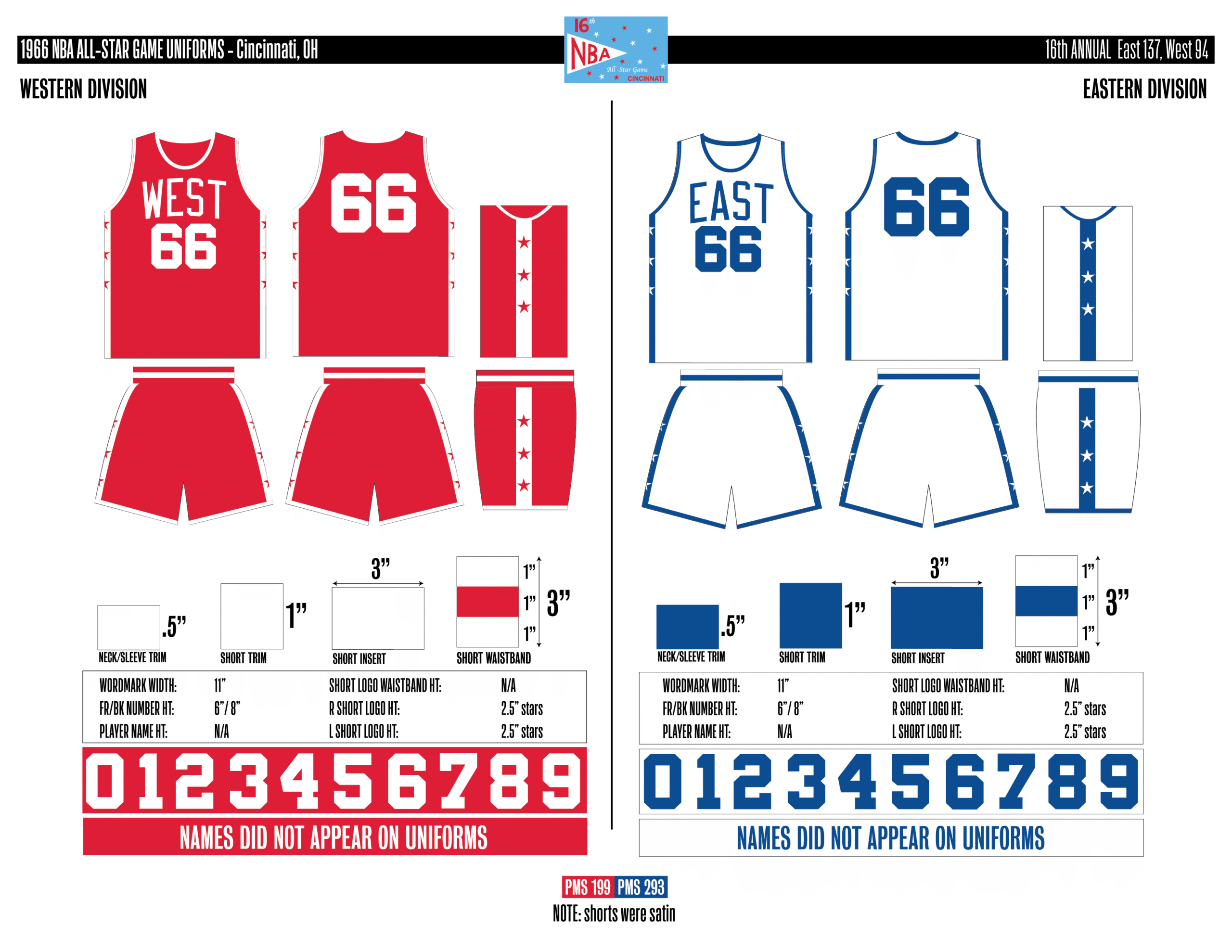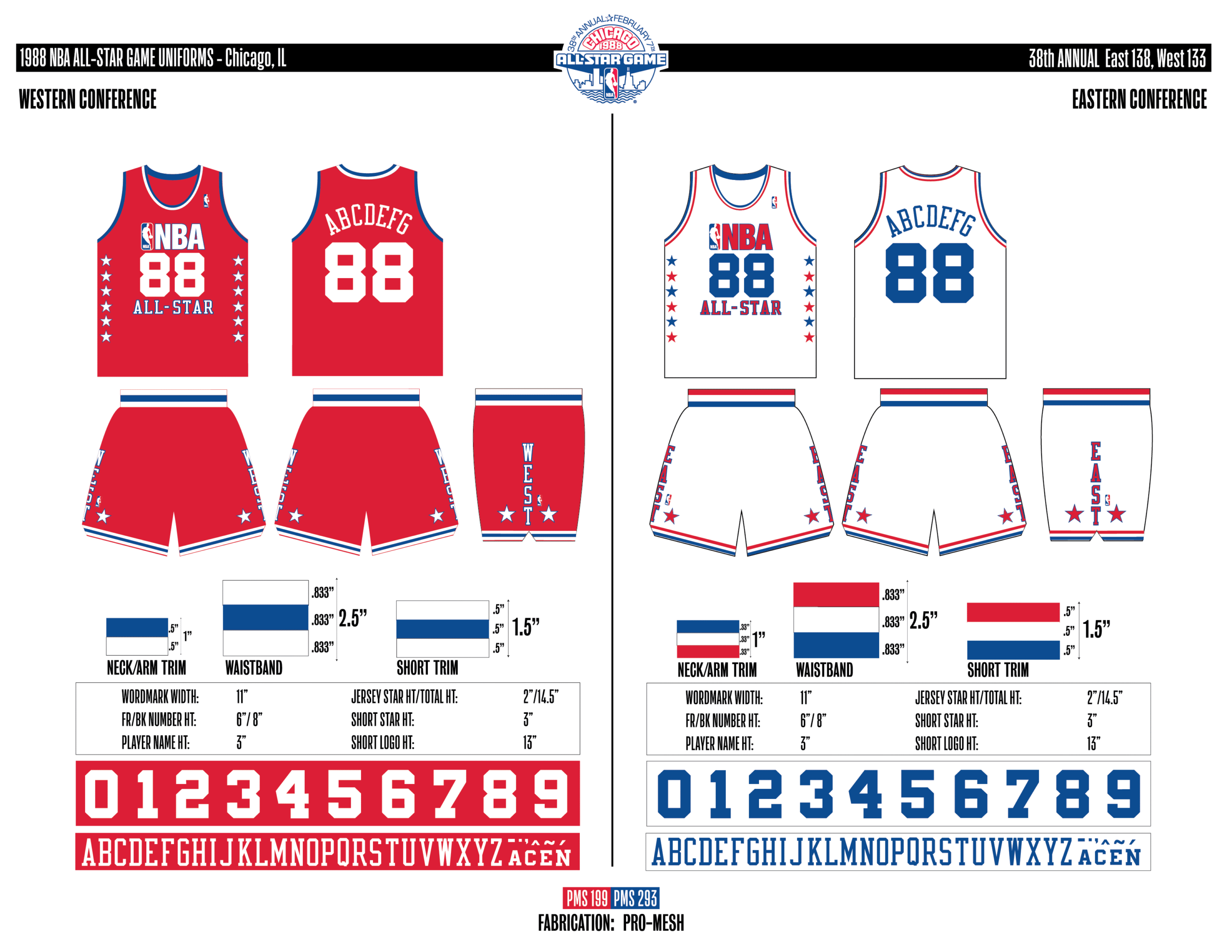 En esta era, los All-Stars de las Conferencias Este y Oeste vestían los uniformes de sus equipos (Este con blanco local, Oeste con uniforme oscuro). Se colocó un parche conmemorativo frente al logo de la NBA. En 2000, se añadió un jocktag conmemorativo.