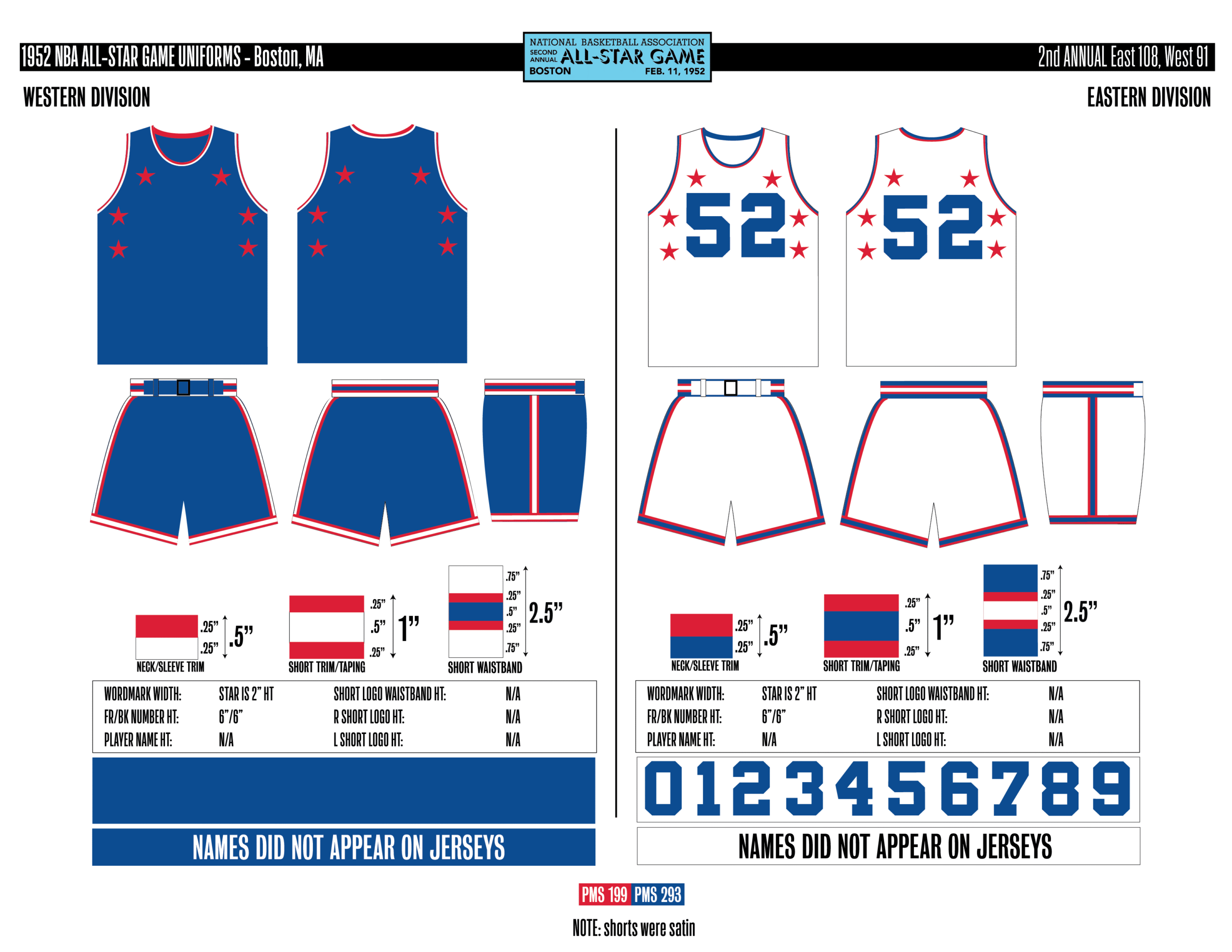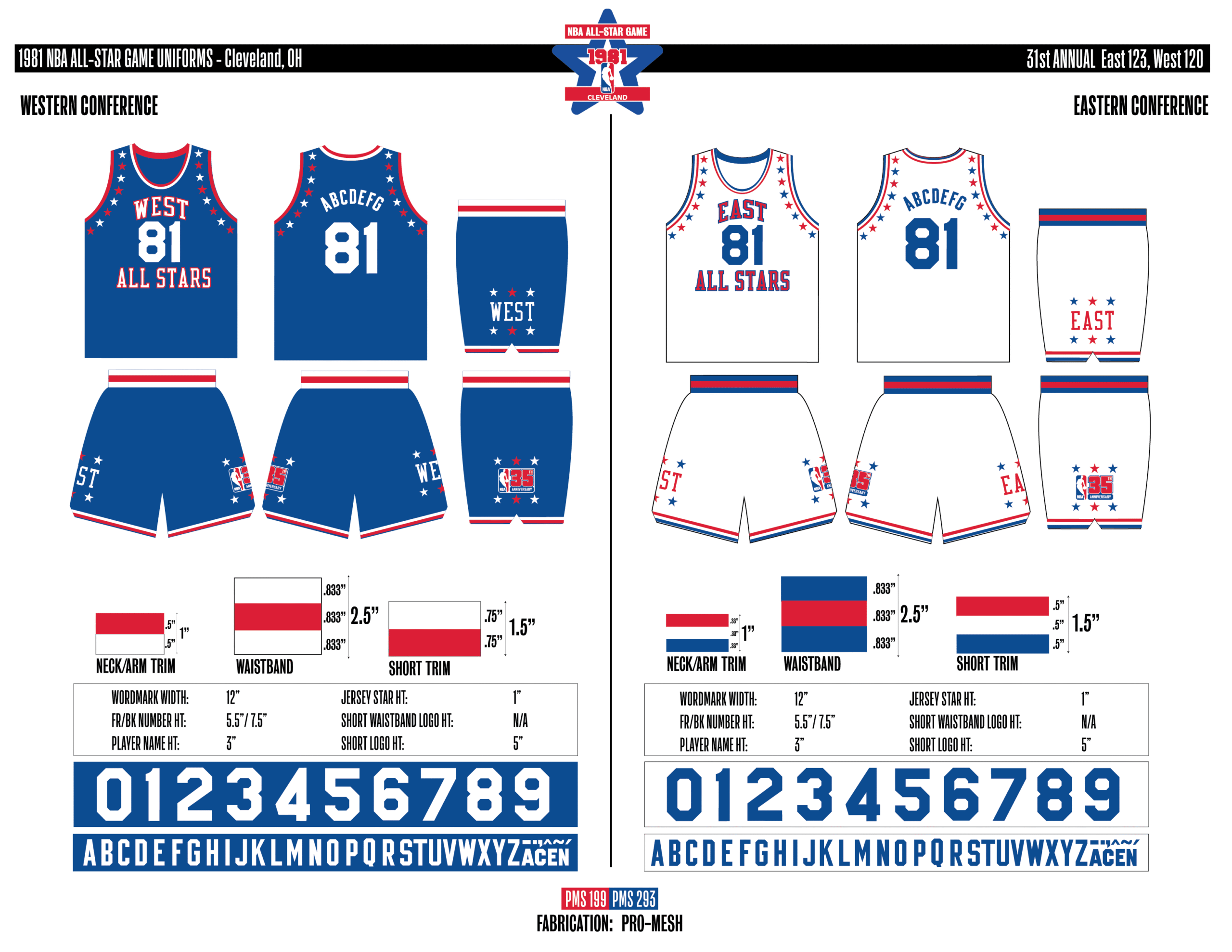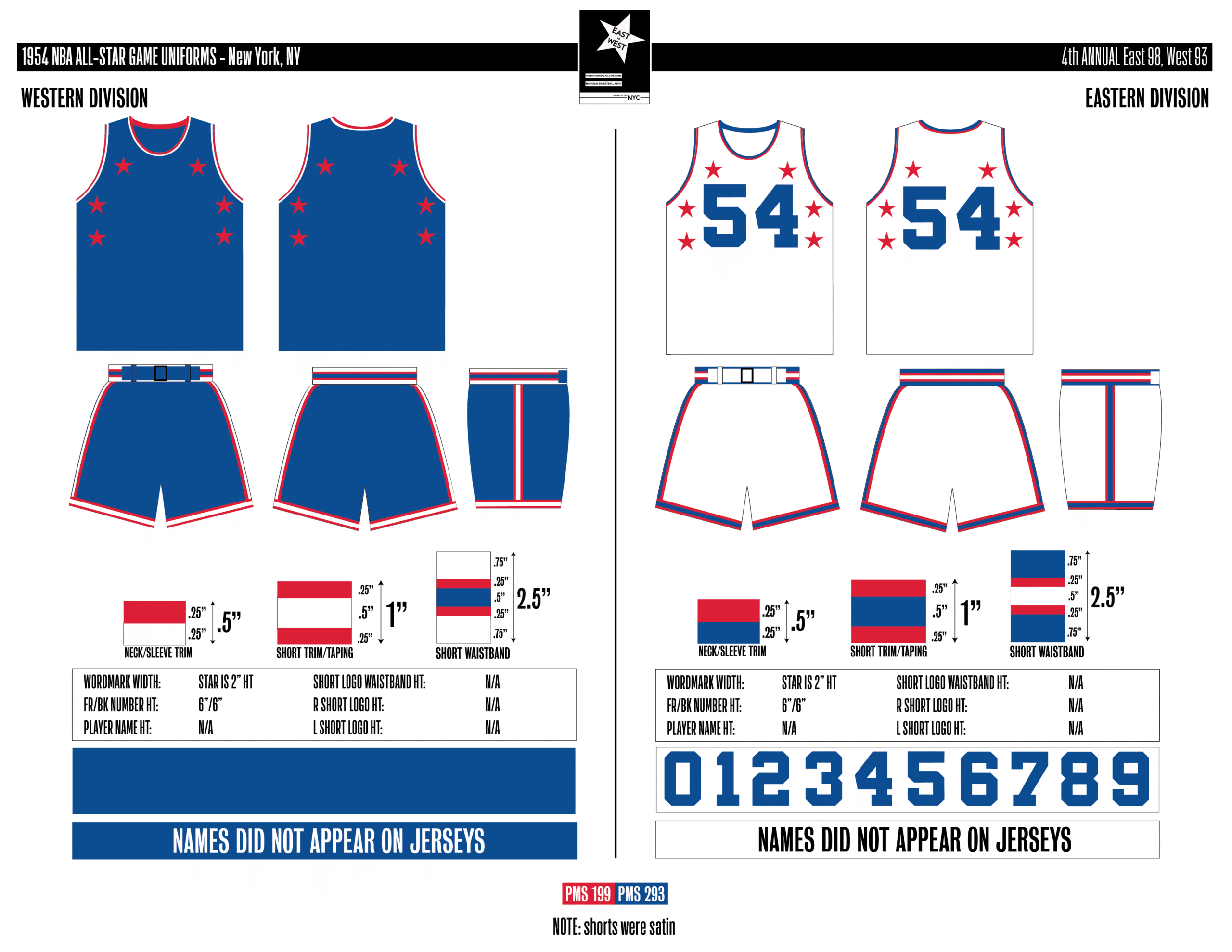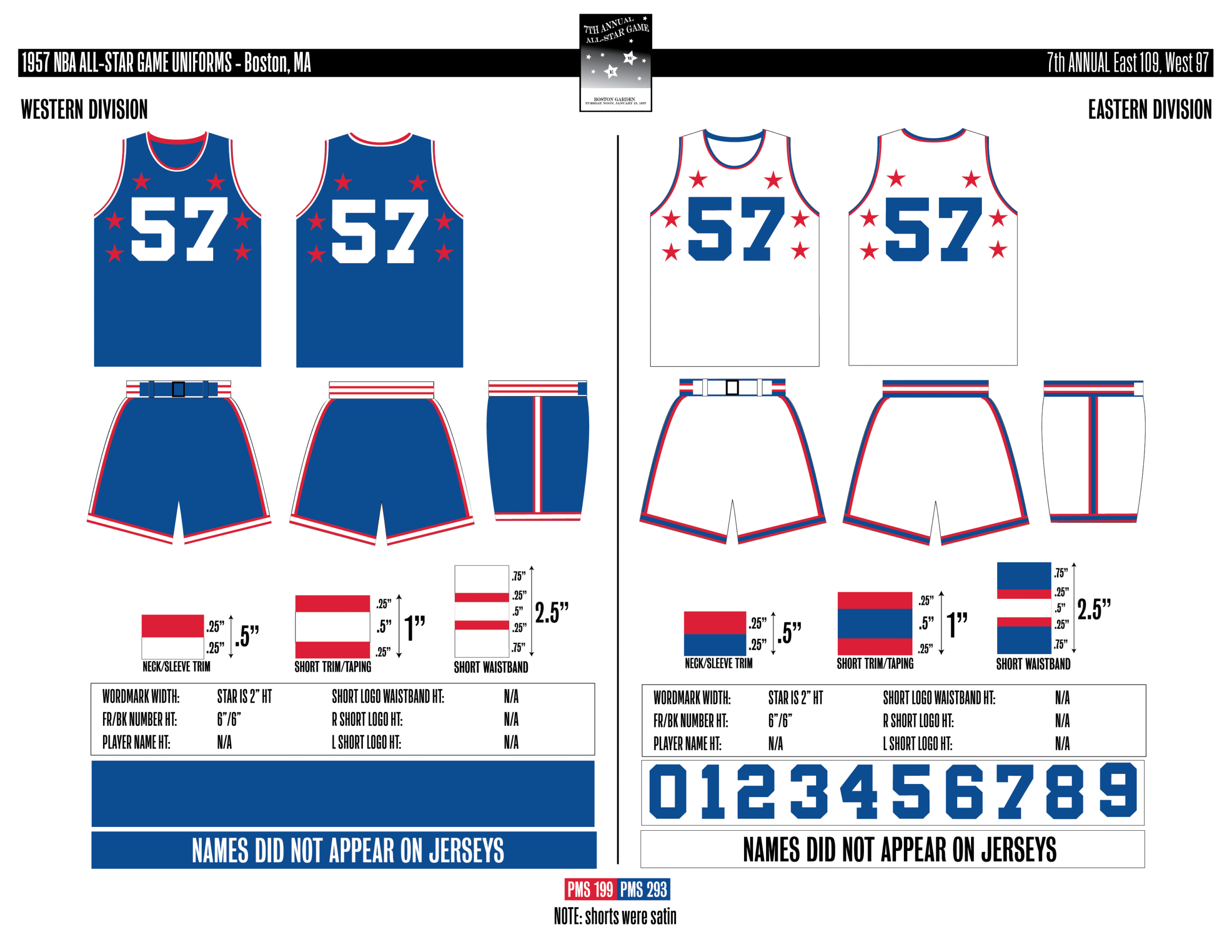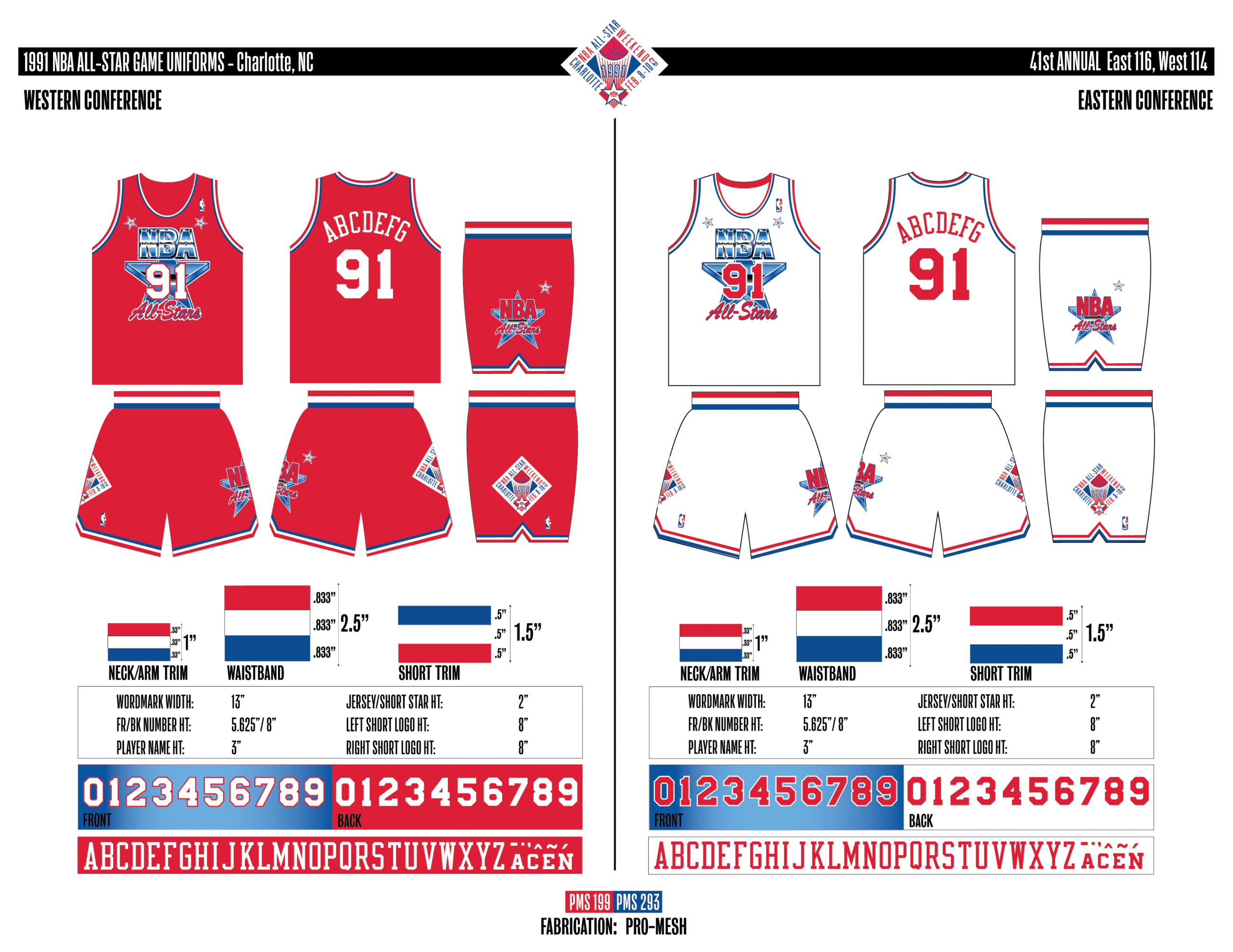 En esta era, los All-Stars de las Conferencias Este y Oeste vestían los uniformes de sus equipos (Este con blanco local, Oeste con uniforme oscuro). Se colocó un parche conmemorativo frente al logo de la NBA. En 2000, se añadió un jocktag conmemorativo.