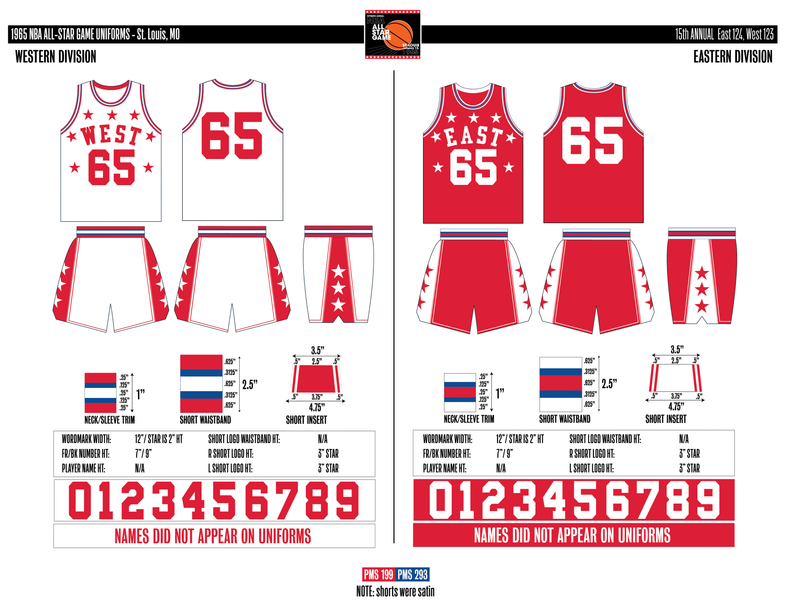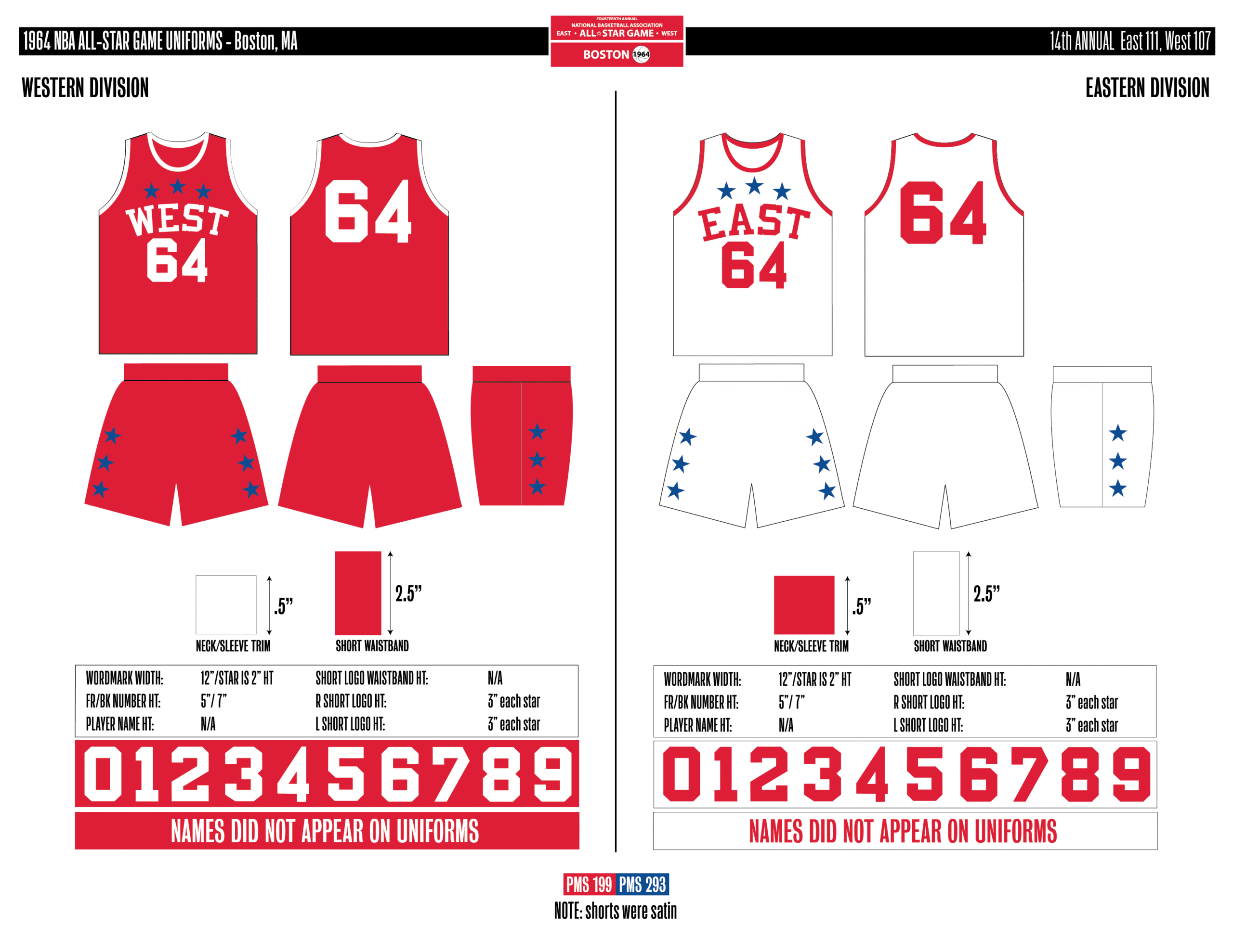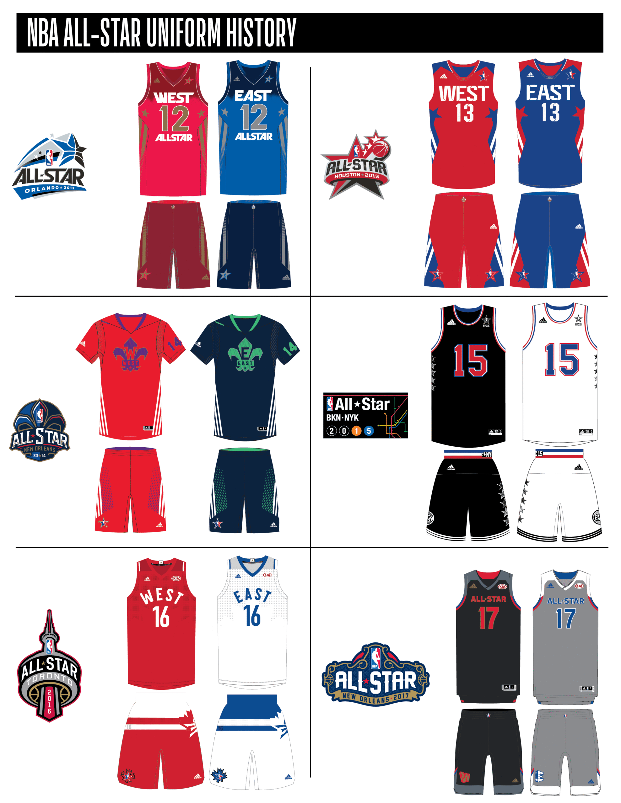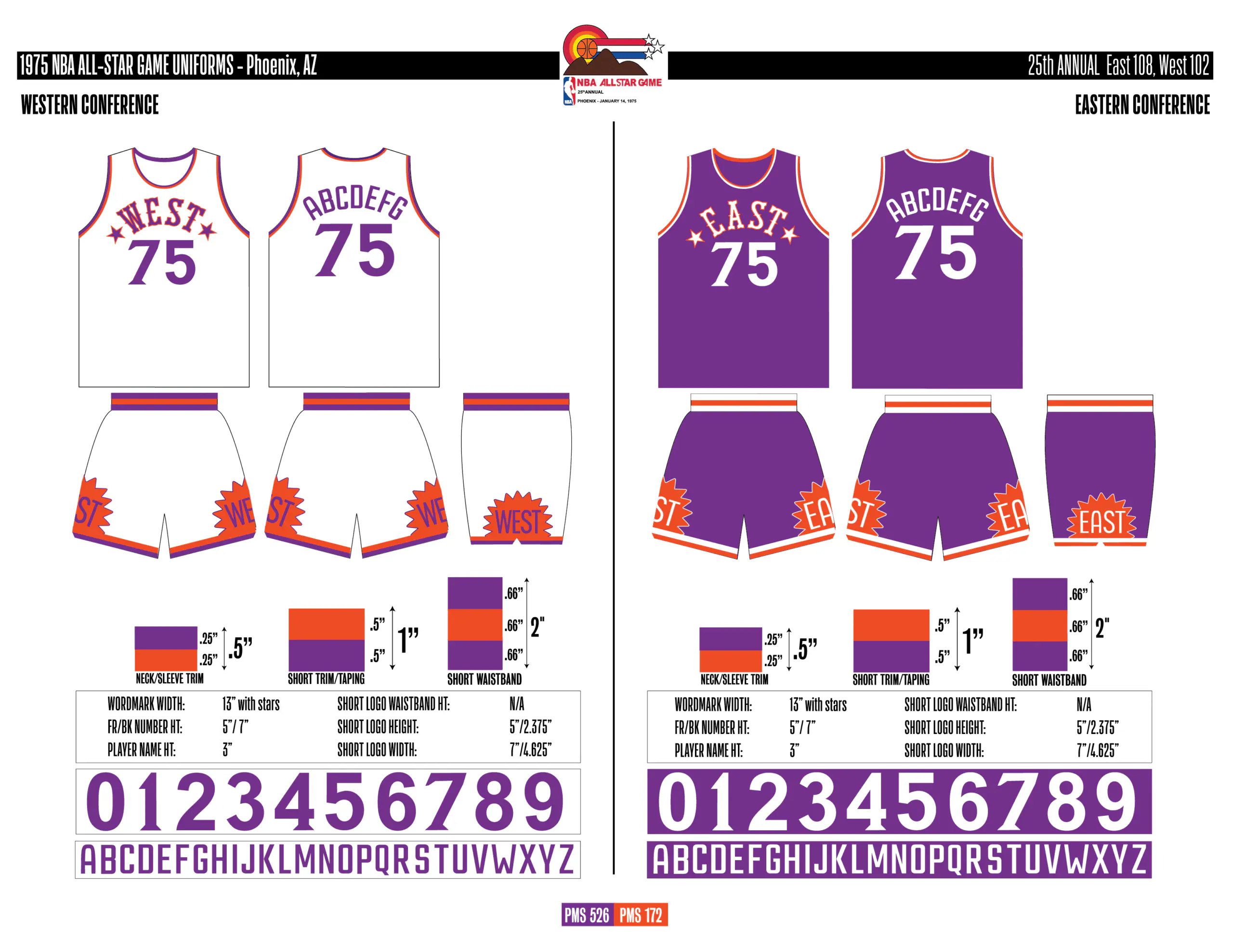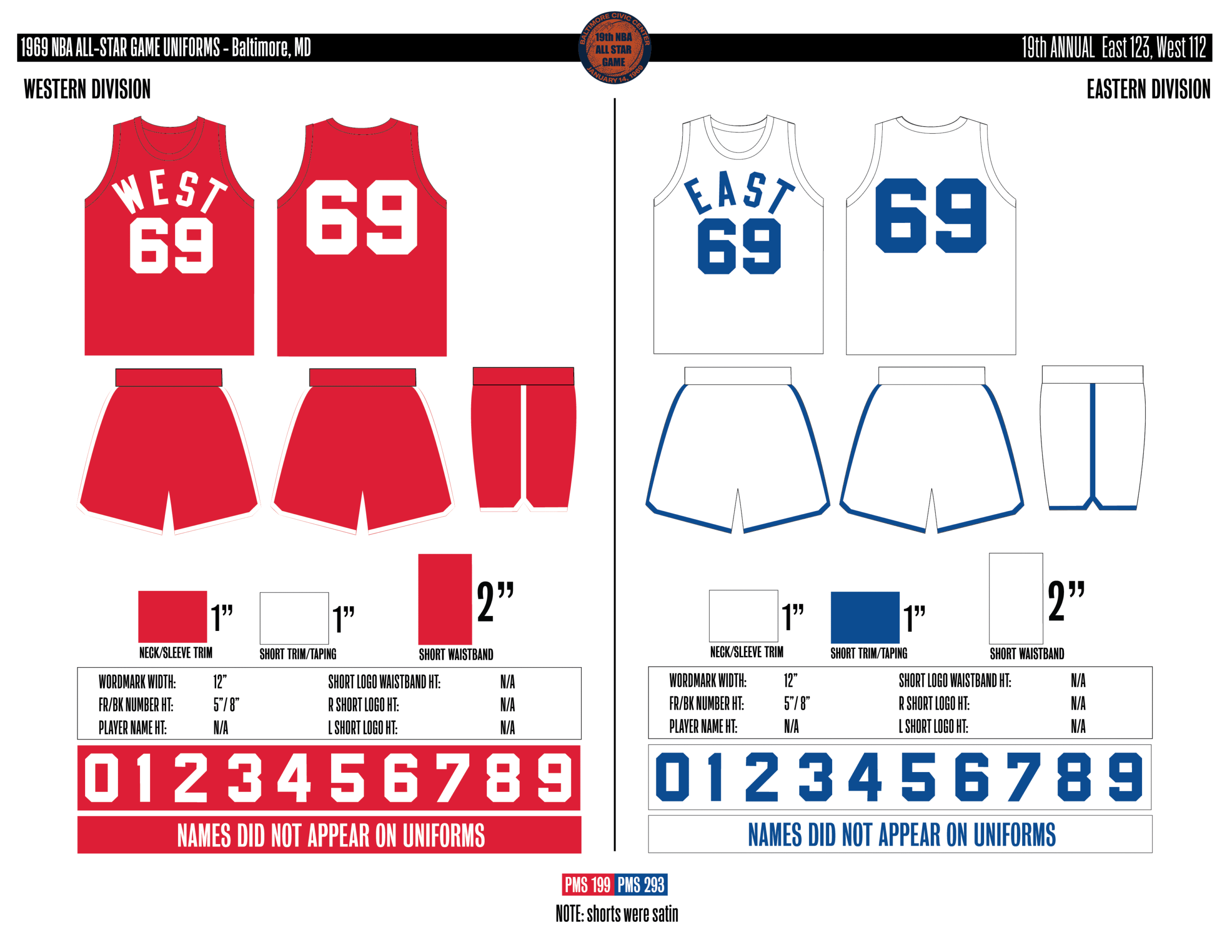 En esta era, los All-Stars de las Conferencias Este y Oeste vestían los uniformes de sus equipos (Este con blanco local, Oeste con uniforme oscuro). Se colocó un parche conmemorativo frente al logo de la NBA. En 2000, se añadió un jocktag conmemorativo.
