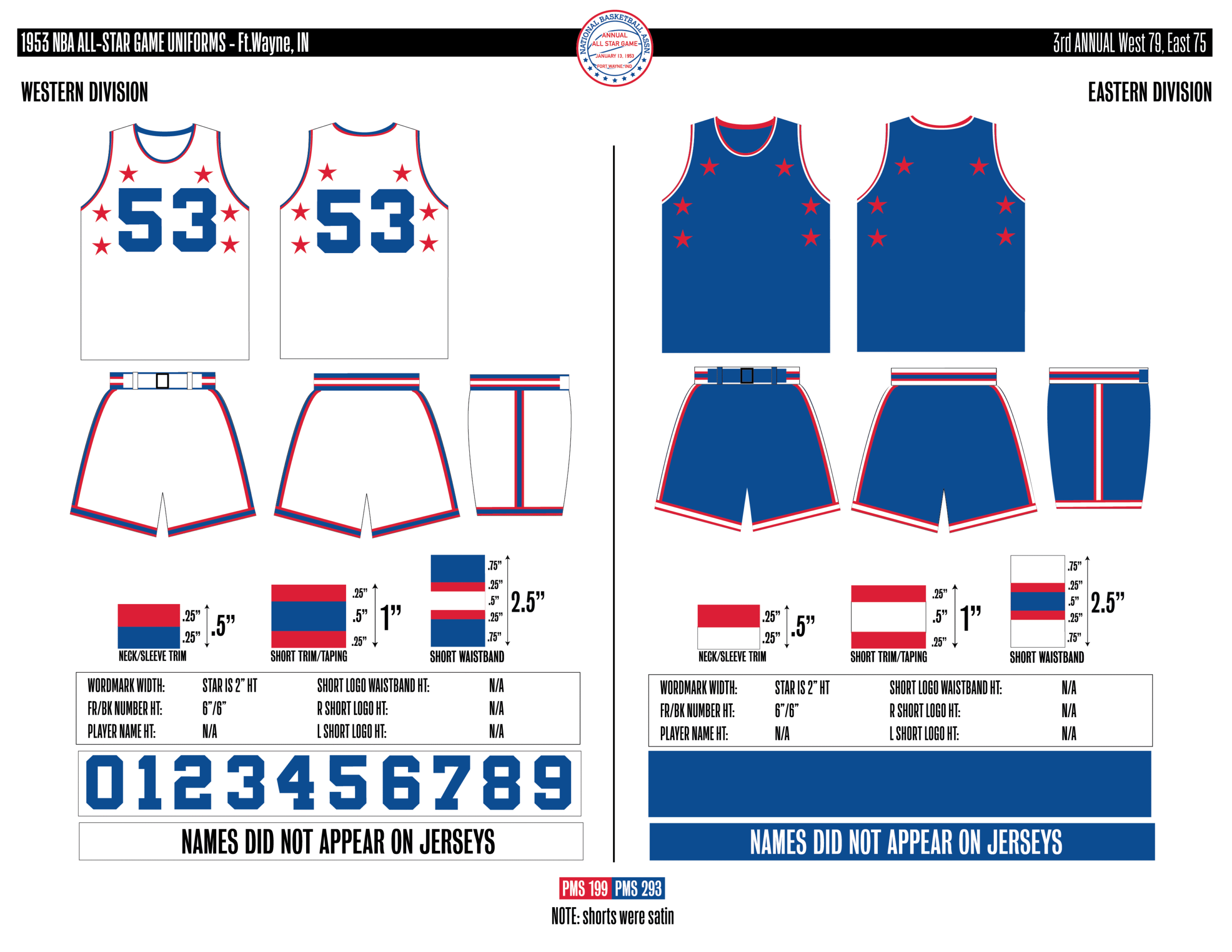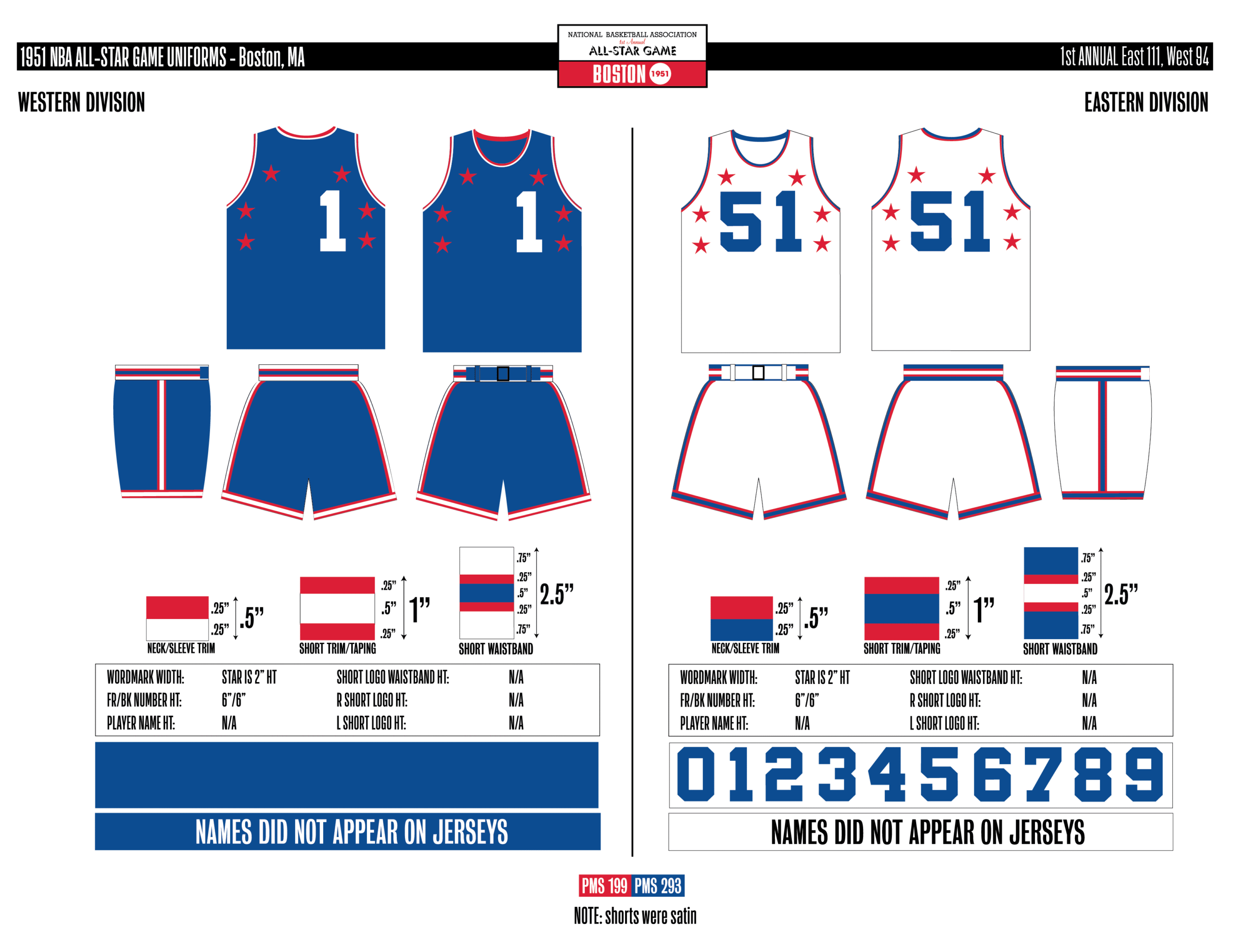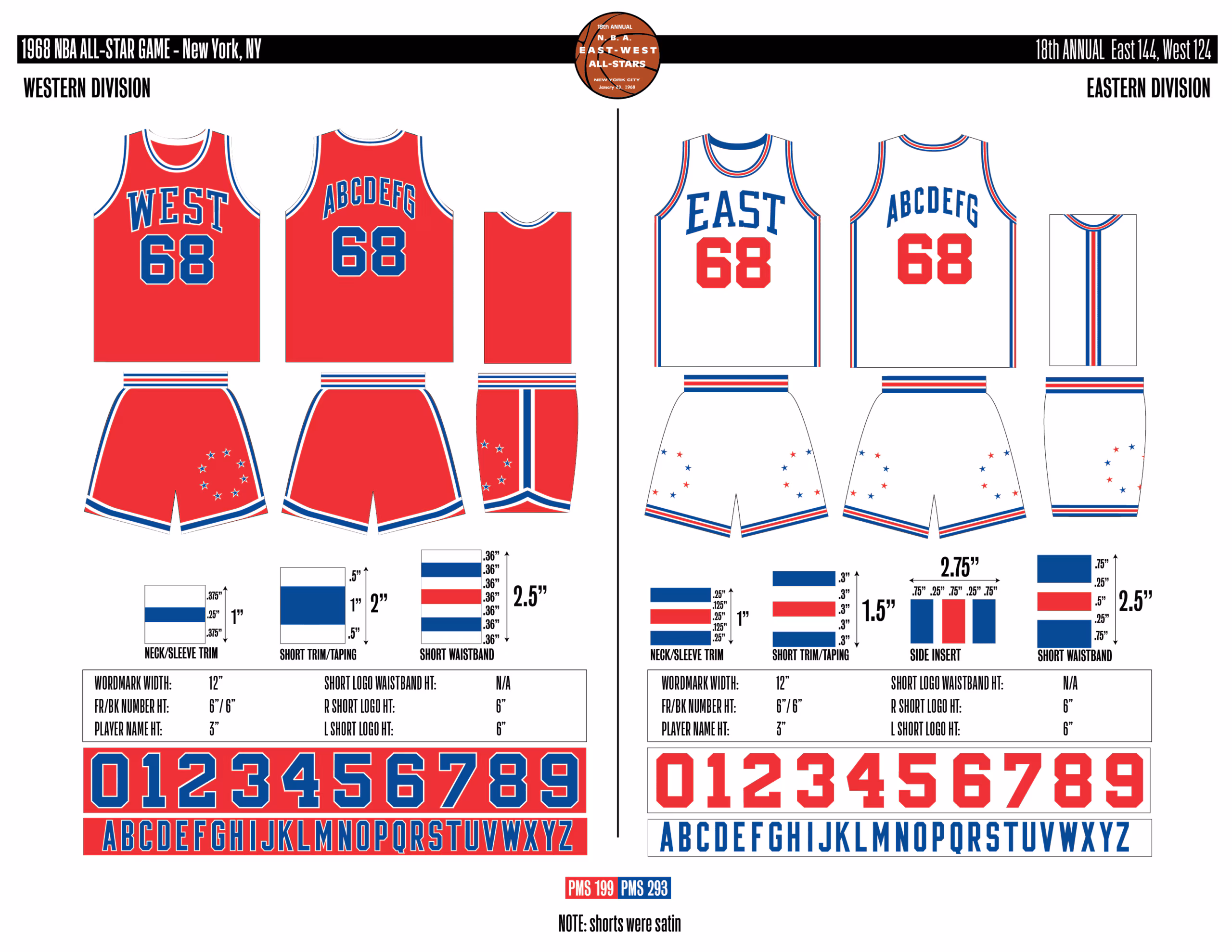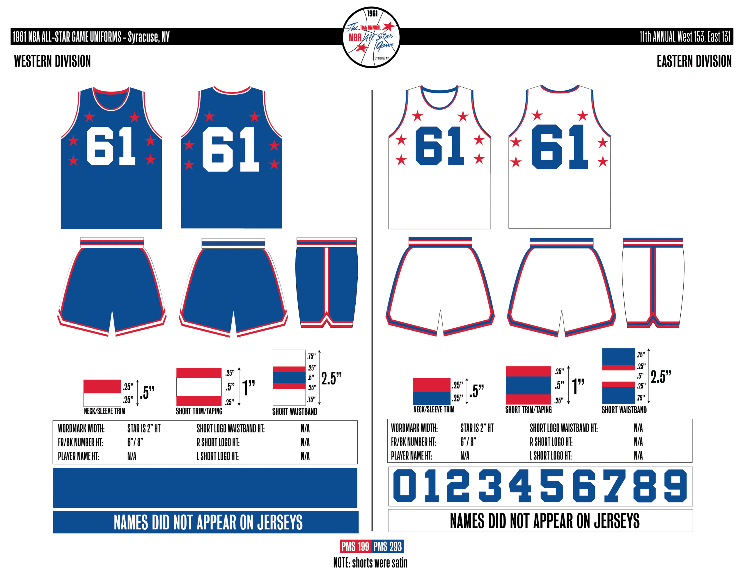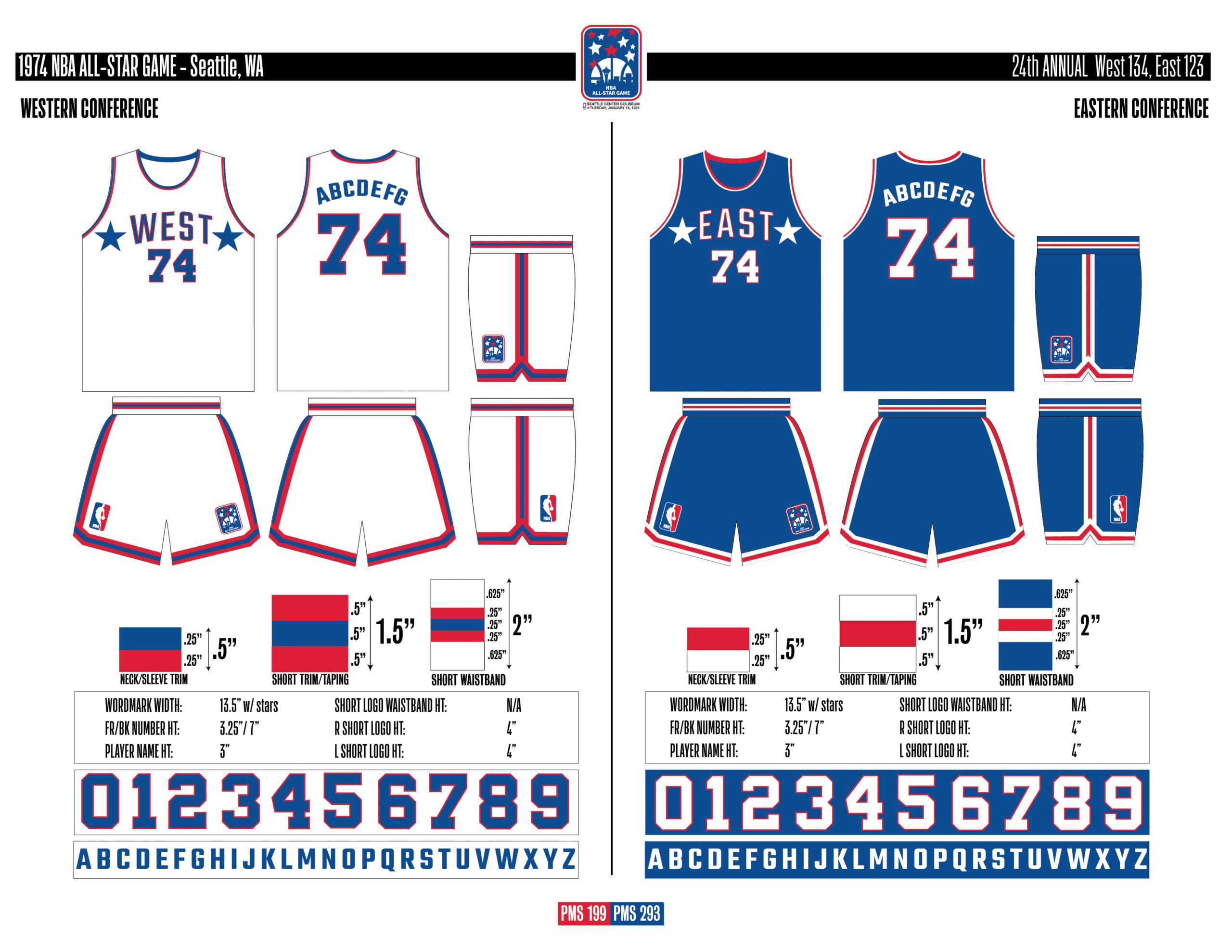 En esta era, los All-Stars de las Conferencias Este y Oeste vestían los uniformes de sus equipos (Este con blanco local, Oeste con uniforme oscuro). Se colocó un parche conmemorativo frente al logo de la NBA. En 2000, se añadió un jocktag conmemorativo.