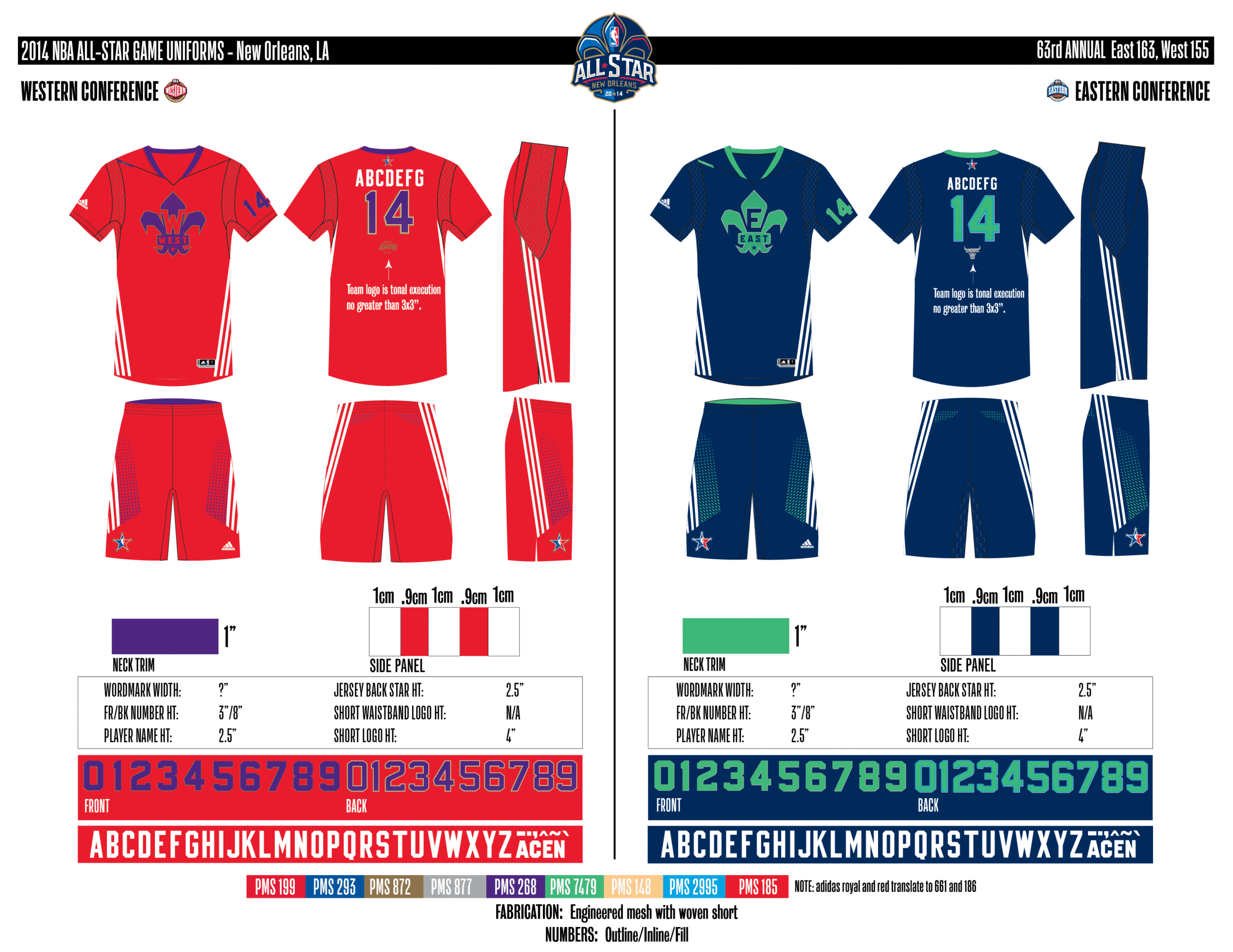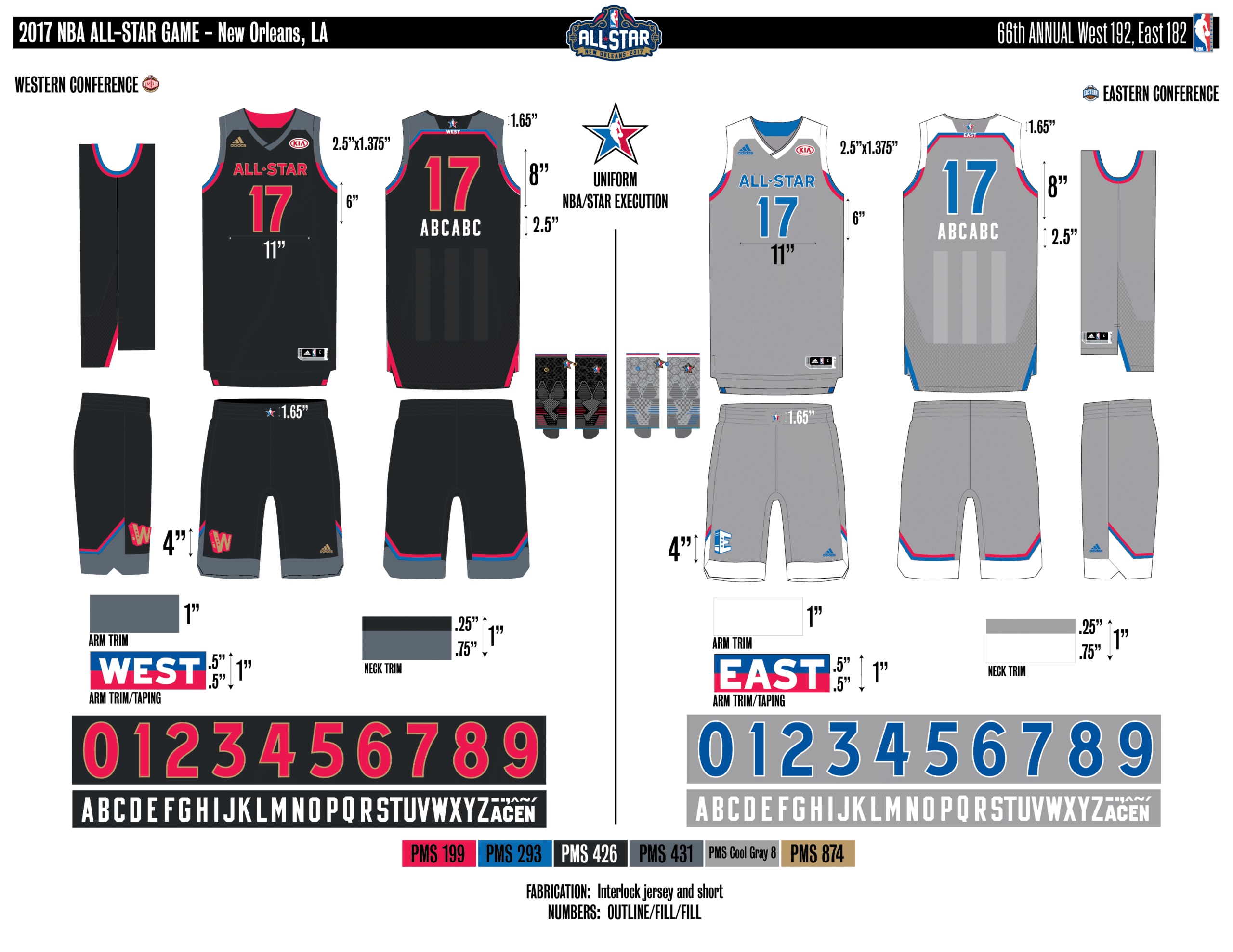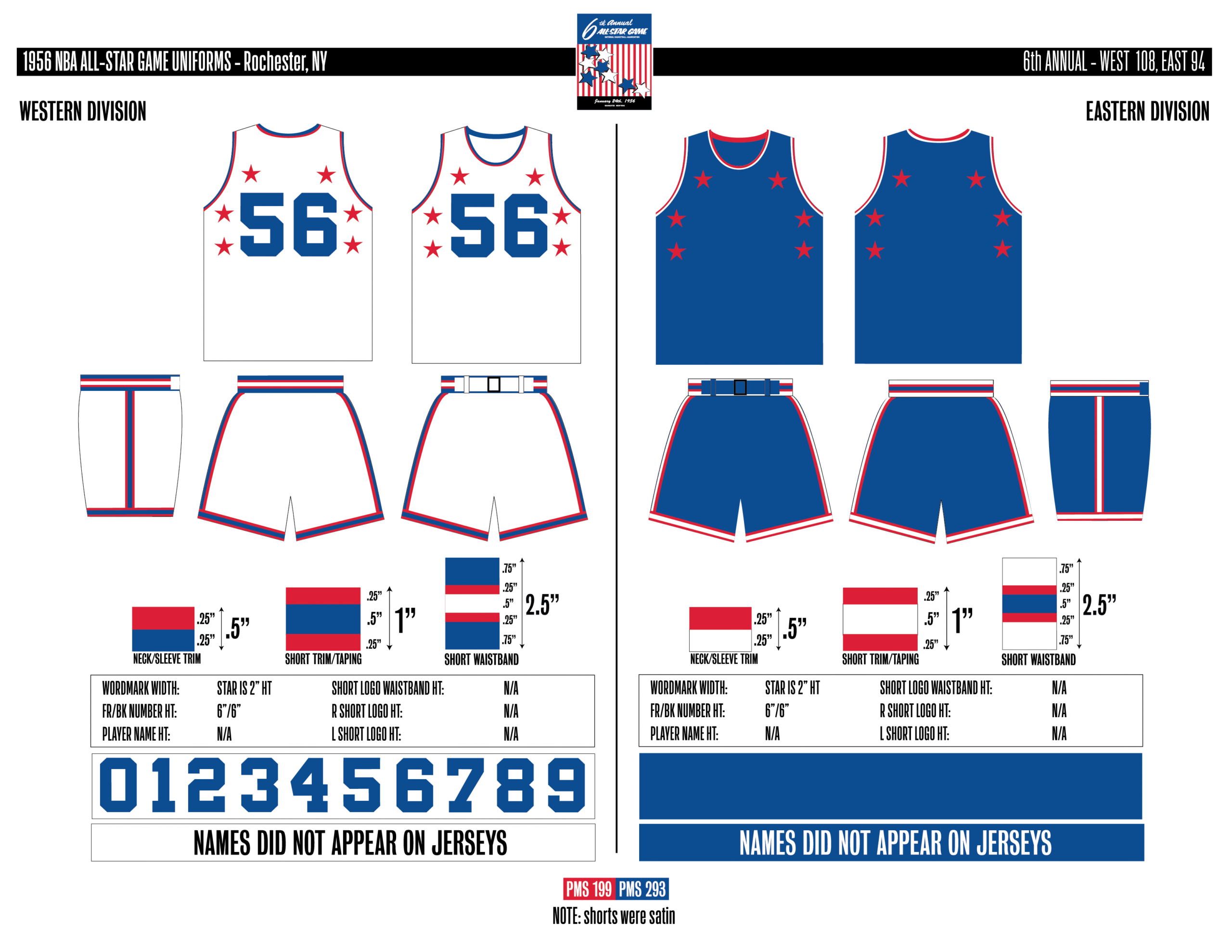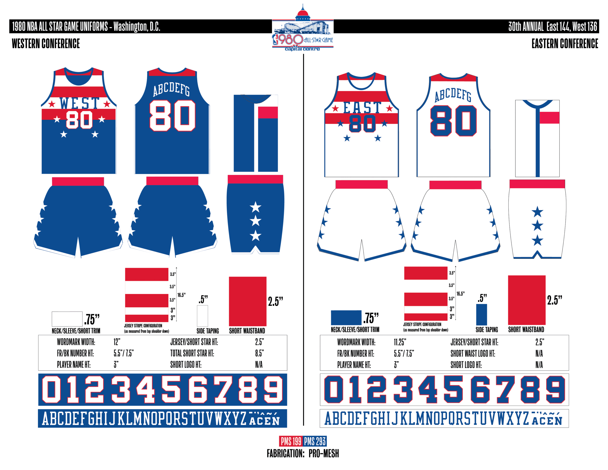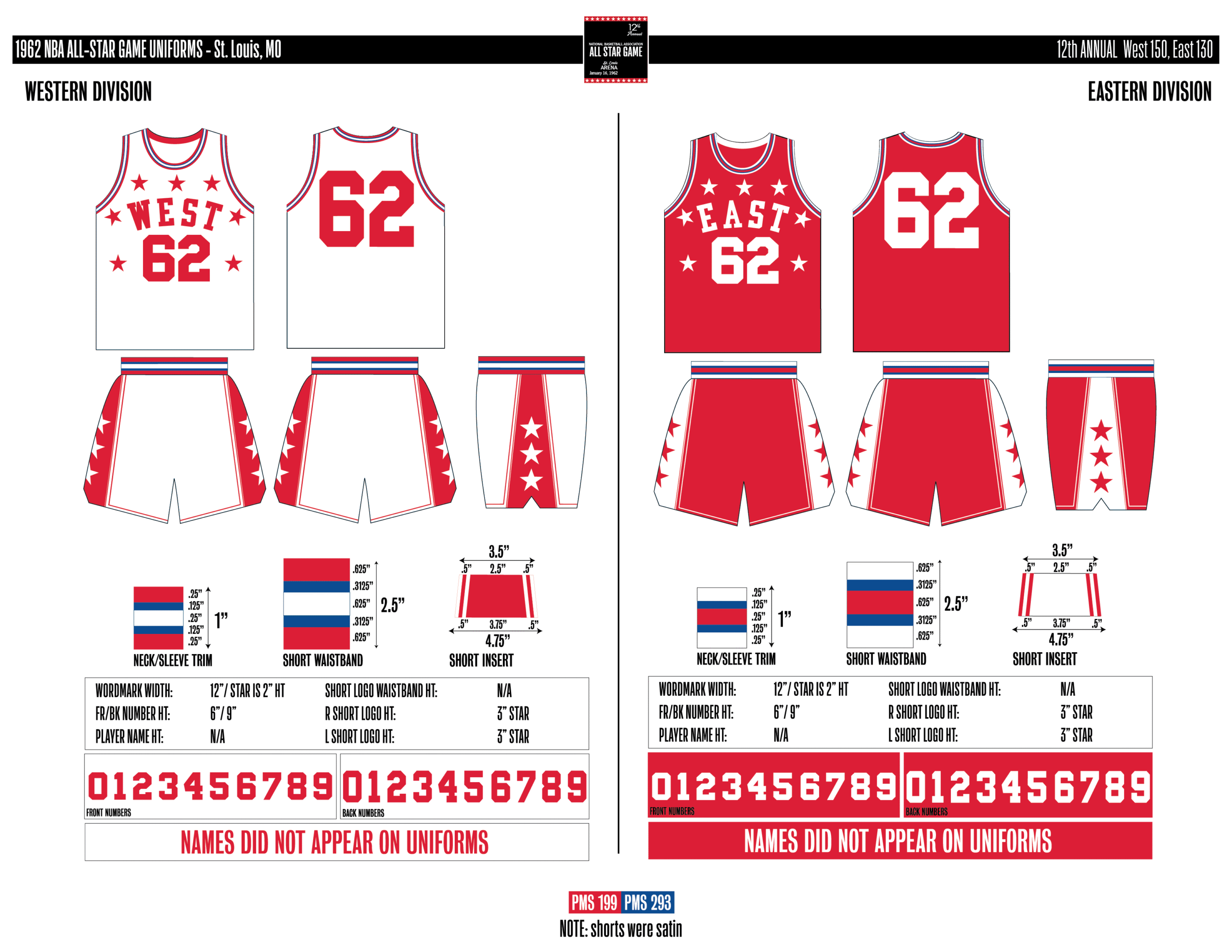 En esta era, los All-Stars de las Conferencias Este y Oeste vestían los uniformes de sus equipos (Este con blanco local, Oeste con uniforme oscuro). Se colocó un parche conmemorativo frente al logo de la NBA. En 2000, se añadió un jocktag conmemorativo.