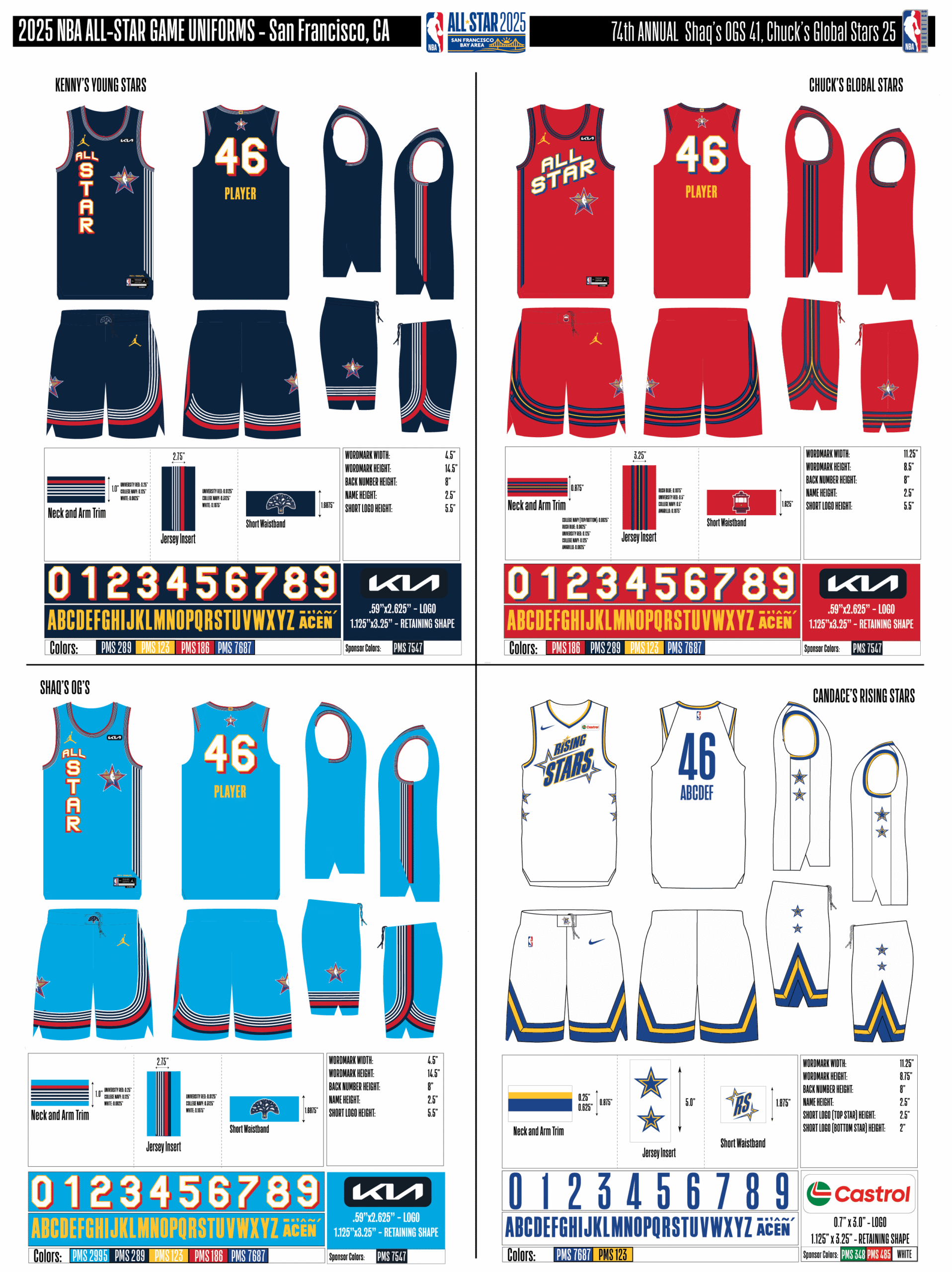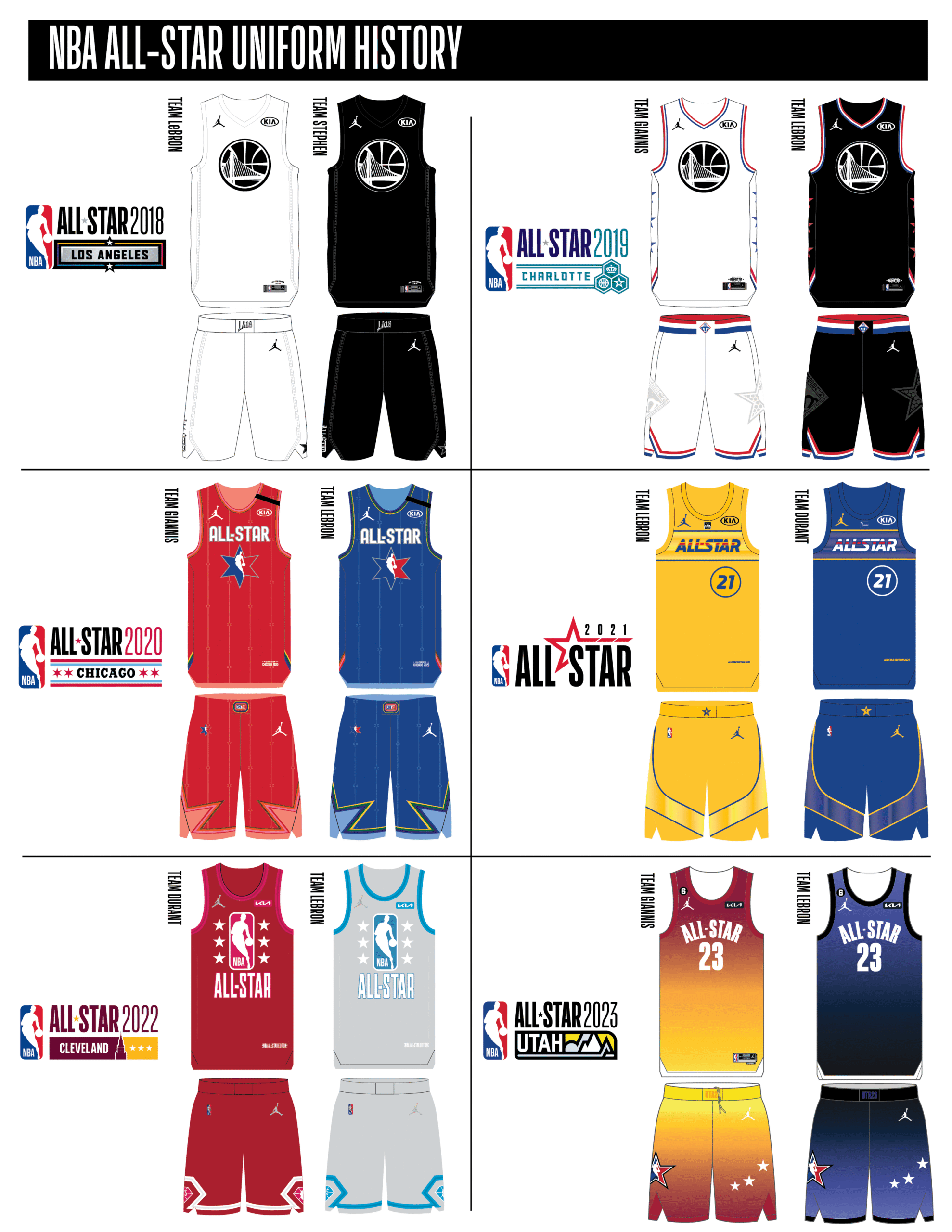 Consulte a continuación una vista consolidada de cada diseño de uniforme y logotipo.