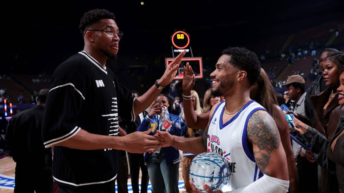 El actor Rome Flynn se está volviendo muy bueno a la hora de robarse la atención. Flynn se llevó a casa el premio al Jugador Más Valioso en el Juego de Estrellas de la NBA Ruffles 2026 el viernes por la noche al anotar 17 puntos y agregar 4 asistencias para el Equipo Giannis en una victoria por 65-58 sobre el Equipo Anthony.