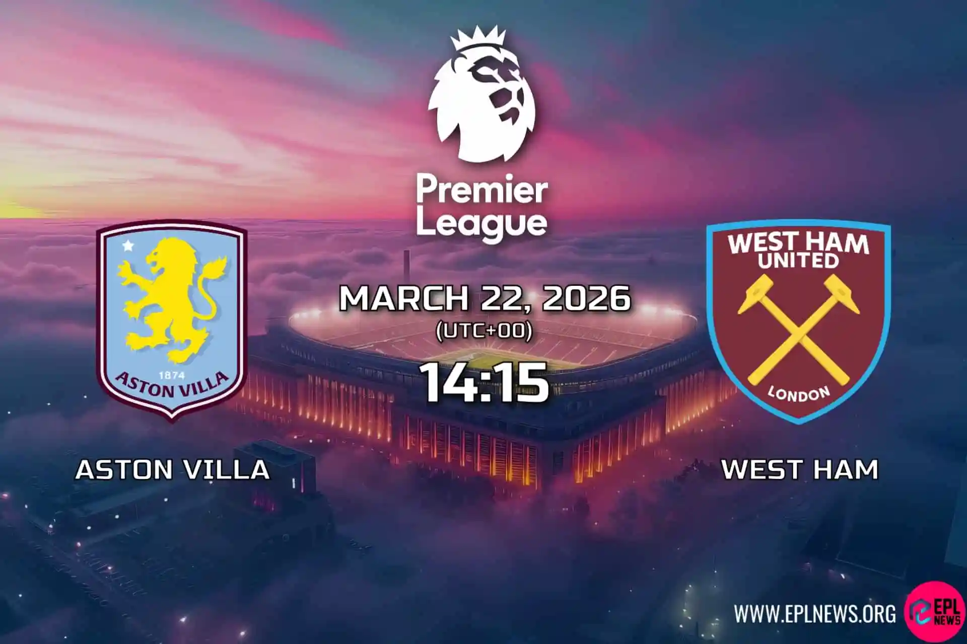 Dos equipos con ambiciones contrastantes pero con la misma urgencia chocan en las Midlands mientras el Aston Villa busca estabilizar su avance entre los cuatro primeros, mientras que el West Ham aspira a salir de la zona de descenso.